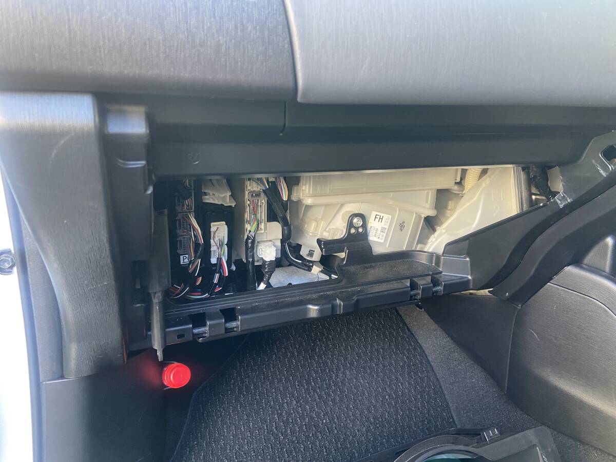 簡単取付:グローブBOXを外し奥の配線2カ所にエレクトロタップでかますだけ。