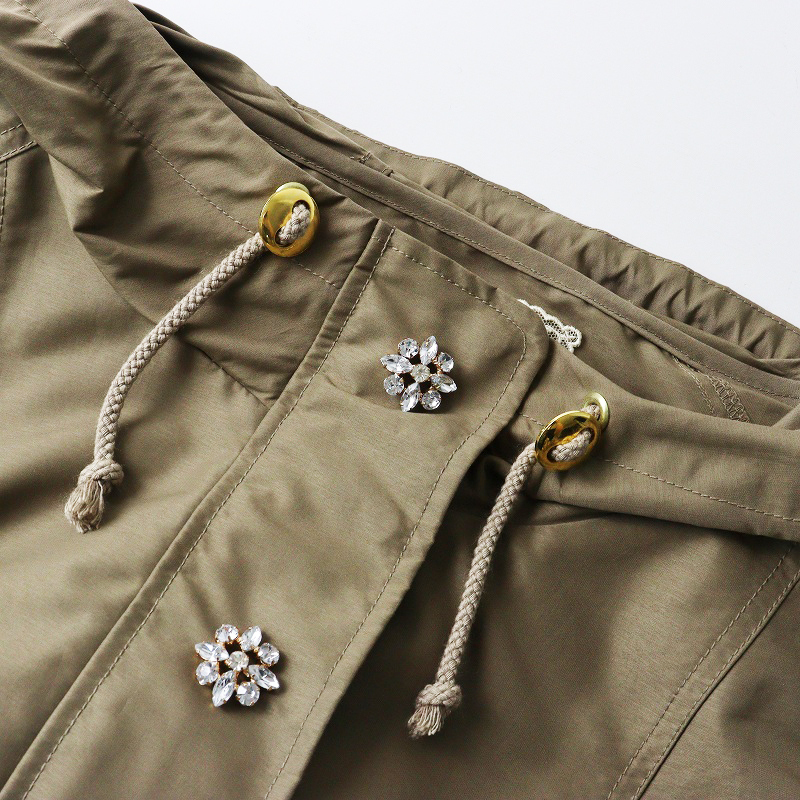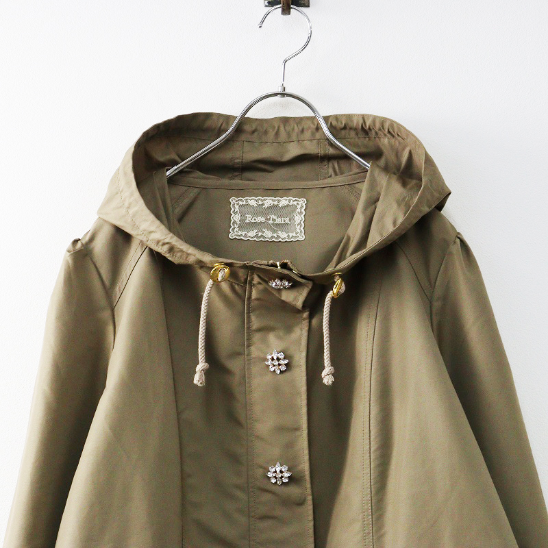 大きいサイズ ローズティアラ Rose Tiara ビジュー フーデッド ショートコート 46|ベージュ 羽織り【2400014656244】 收藏