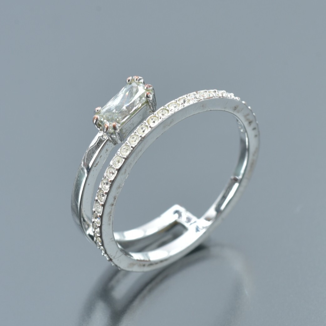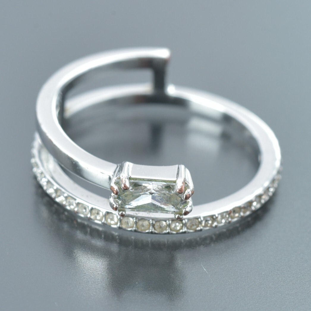良品 スワロフスキー 2連 リング 17号/58/18.3mm ラインストーン シルバー クリスタル SWAROVSKI ジュエリー アクセサリー #N※C753 收藏