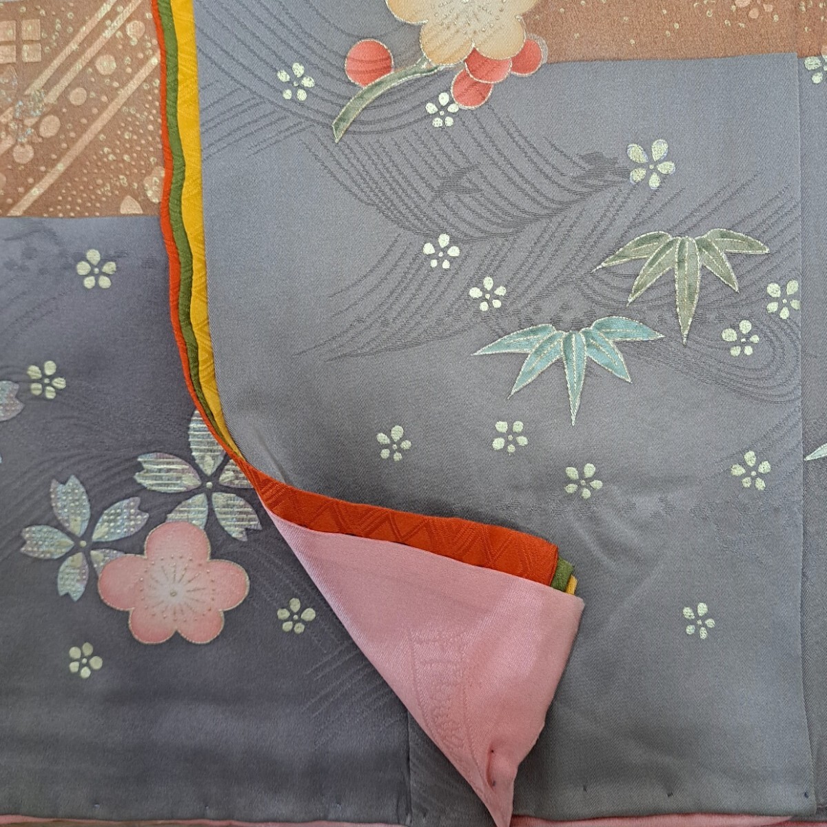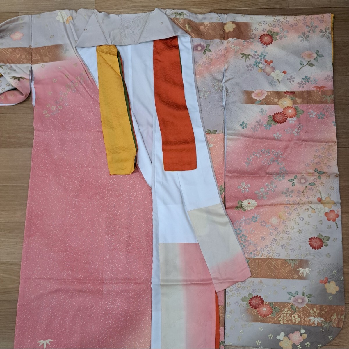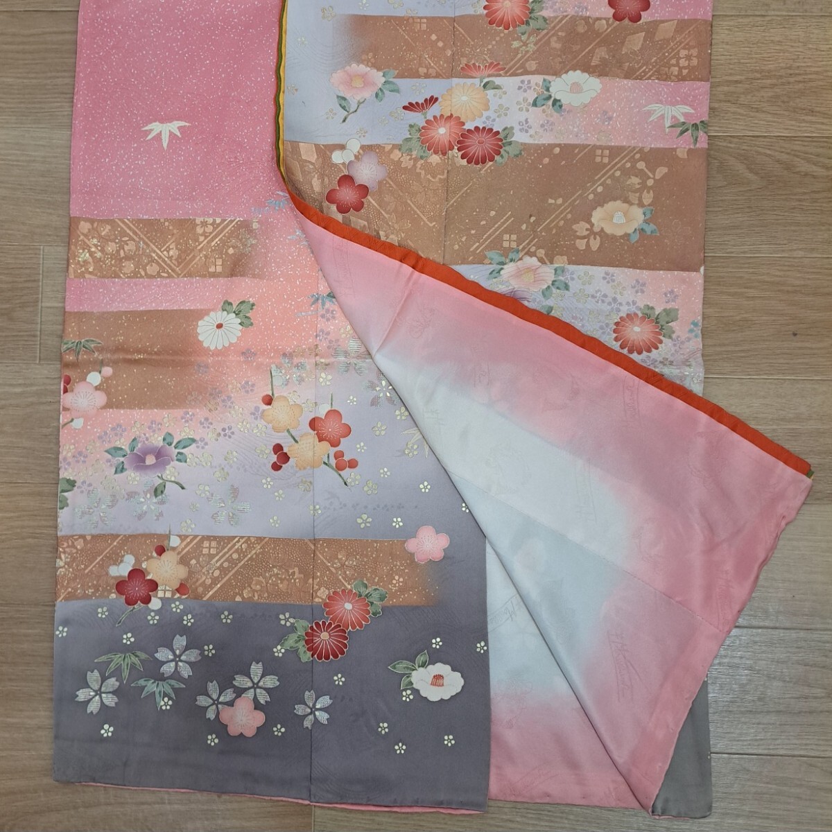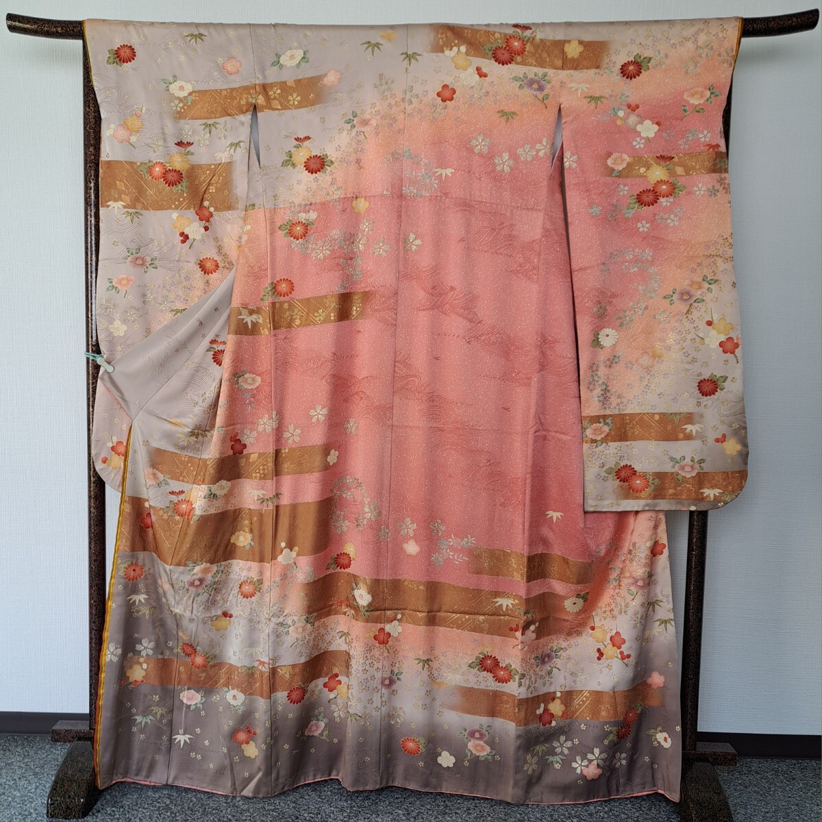 正絹振袖セット ピンク地の古典的な金彩模様と十二単風の重ね仕立 成人式に最適 收藏