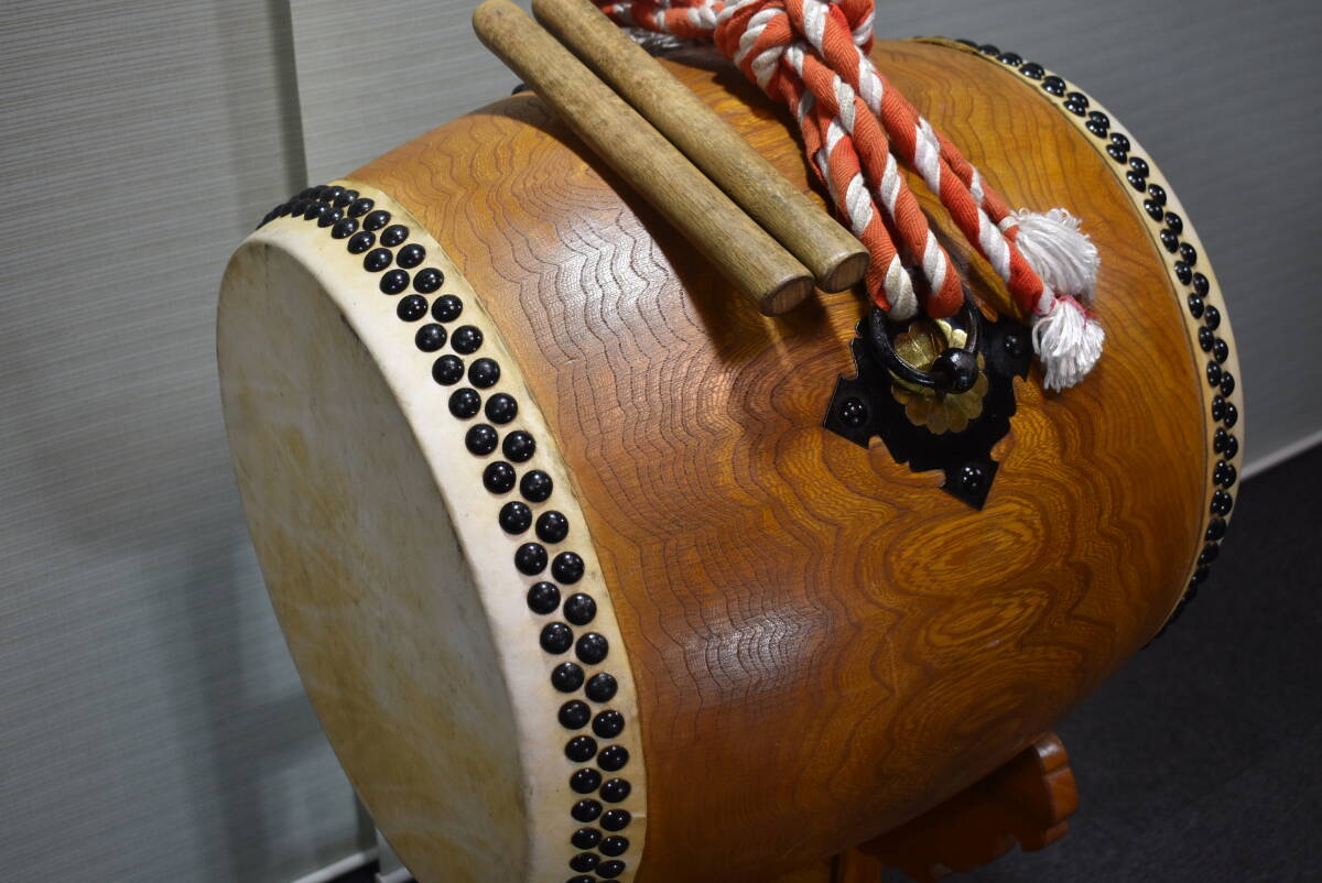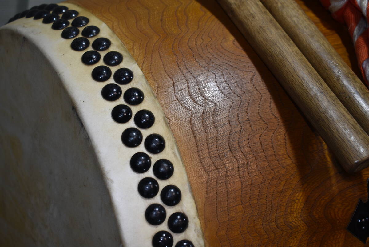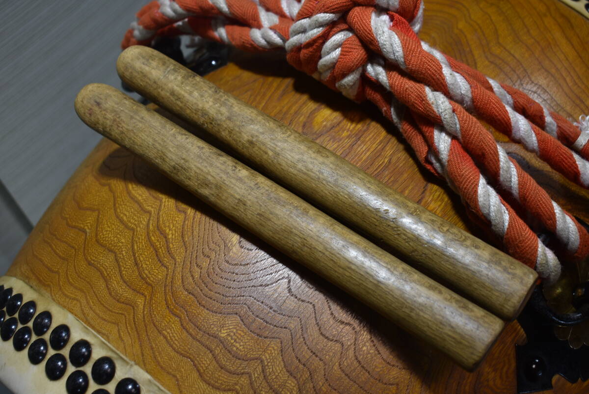 ■■宮大太鼓「長胴太鼓」和太鼓■くり抜き胴■バチ/台付■総欅/無垢■打面直径42.5cm(1尺4寸)■胴寸53cm(1尺7寸)■祭/舞台■ 收藏