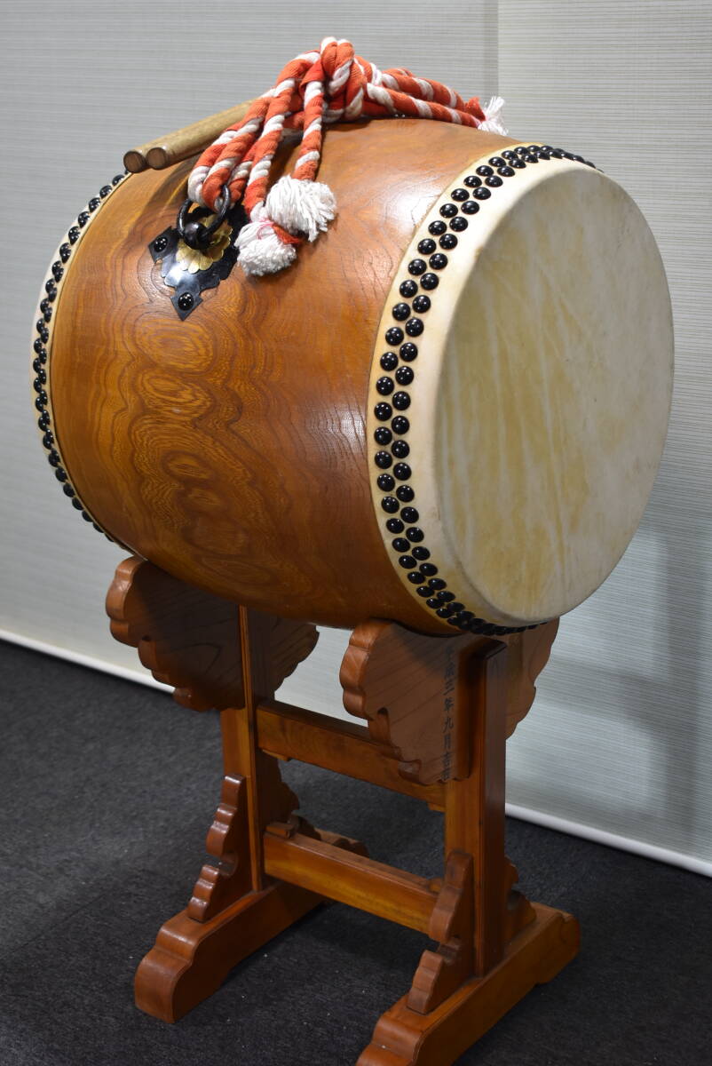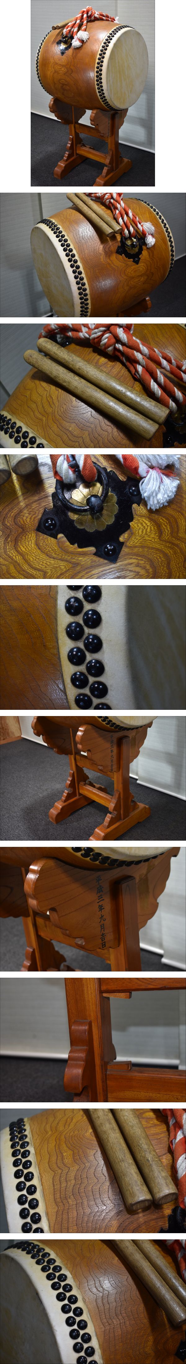 使用感の少ない良品です。 バチ/台も付きますので到着後直ぐに使用できます。 ■打面直径 42.5cm(1尺4寸) ■胴寸 53cm(1尺7寸)■ 付属品 台(欅/無垢)・バチ(樫) コンディション 購入時期は不明ですが・・ 神社で大切に保管されていた品物です。 質の良い音で保存状態も極めて良好です。 写真参照 発送 本体は「0123家財 おまかせ便Aランク×2個口 ※東京/大阪3,260円×2個口 ■重要■ 2022年7月からのシステム変更に伴い落札後に電話番号が表示されなくなりましたが、発送先の電話番号は必須項目となりますので落札後に取引メッセージ欄より必ず電話番号をお伝えください。※個人出品ですから消費税は頂きません。 ※今回出品する品物は写真の物ですべてとなりますのでご了承下さい。 ※動作保証します。 (万が一初期不良が発生した場合は全額返金する事をお約束致します) ■重要なお願い(必須)■ 落札後取引ナビから配達当日に繋がる「電話番号」をお知らせ下さい。 (電話番号がないと発送できません。) | |||