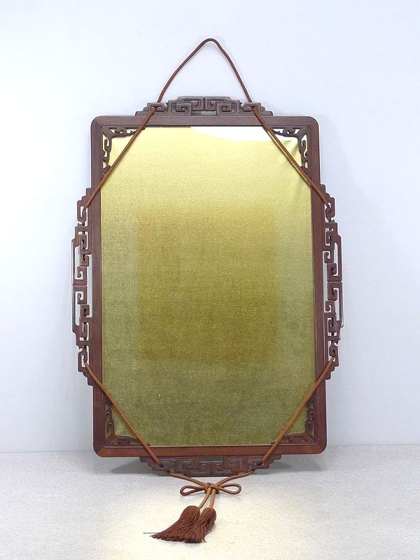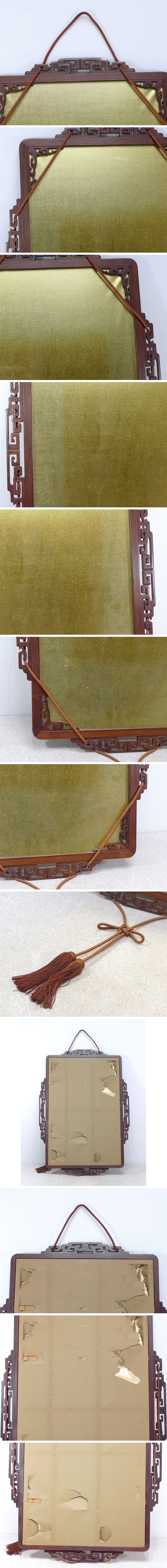 1423H10*10B▲中国美術 唐木透かし彫枠硝子面額 額縁 額房 木製 收藏