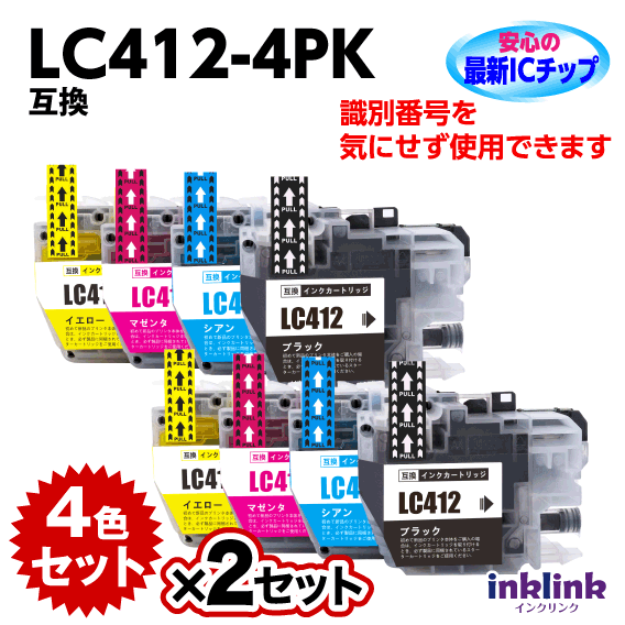 LC412-4PK 4色セットx2セット 染料インク ブラザー 互換インク ロット番号 識別番号を気にせず使える最新チップ 收藏