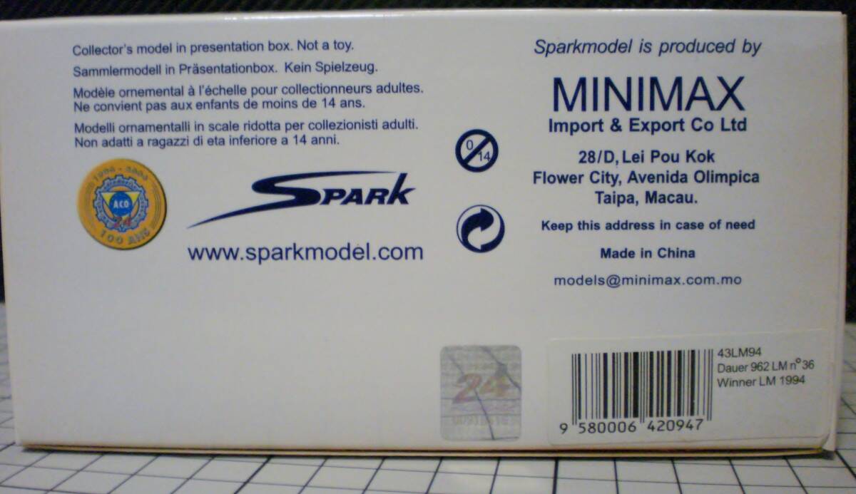 Dauer Porsche 962 LM No.36 Winner Le Mans 1994 Yannick Dalmas - Mauro Baldi - Hurley Haywood (1/43スケール 43LM94)| 出价者 | 信用 | 价格 | 时间 |
