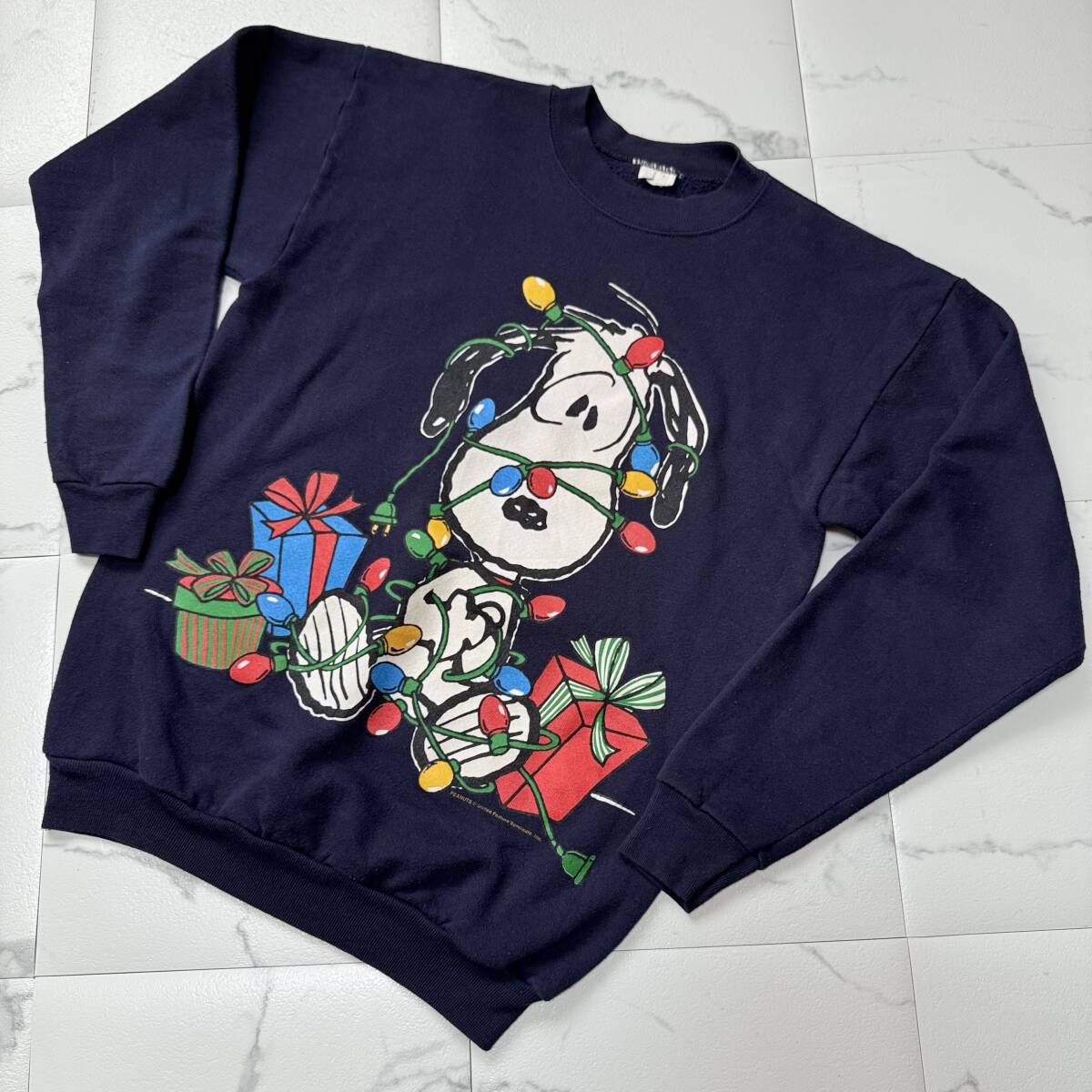 ★ 90s ヴィンテージ SNOOPY スヌーピー ピーナッツ クリスマス スウェットシャツ スウェット トレーナー ネイビー USA アメリカ古着 ★ 收藏