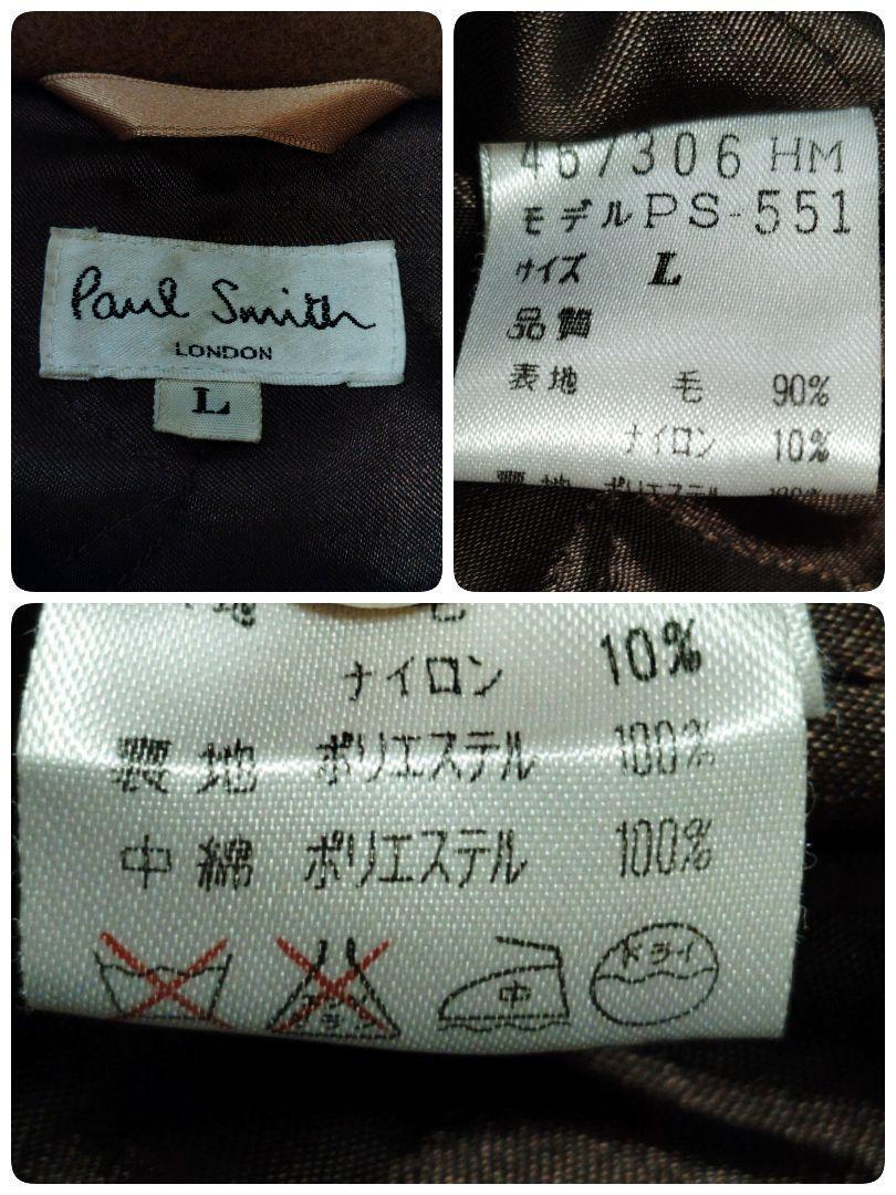 【美品】Paul Smith ポールスミス ウール キルティング ロングコート メンズ L ウール キャメル系カラー 防寒 紳士 アウター メンズ 收藏