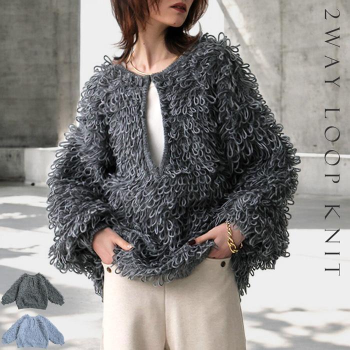 | 試着のみ!美品☆antiqua アンティカ☆ニット セーター 2wayループ編みニット | ||