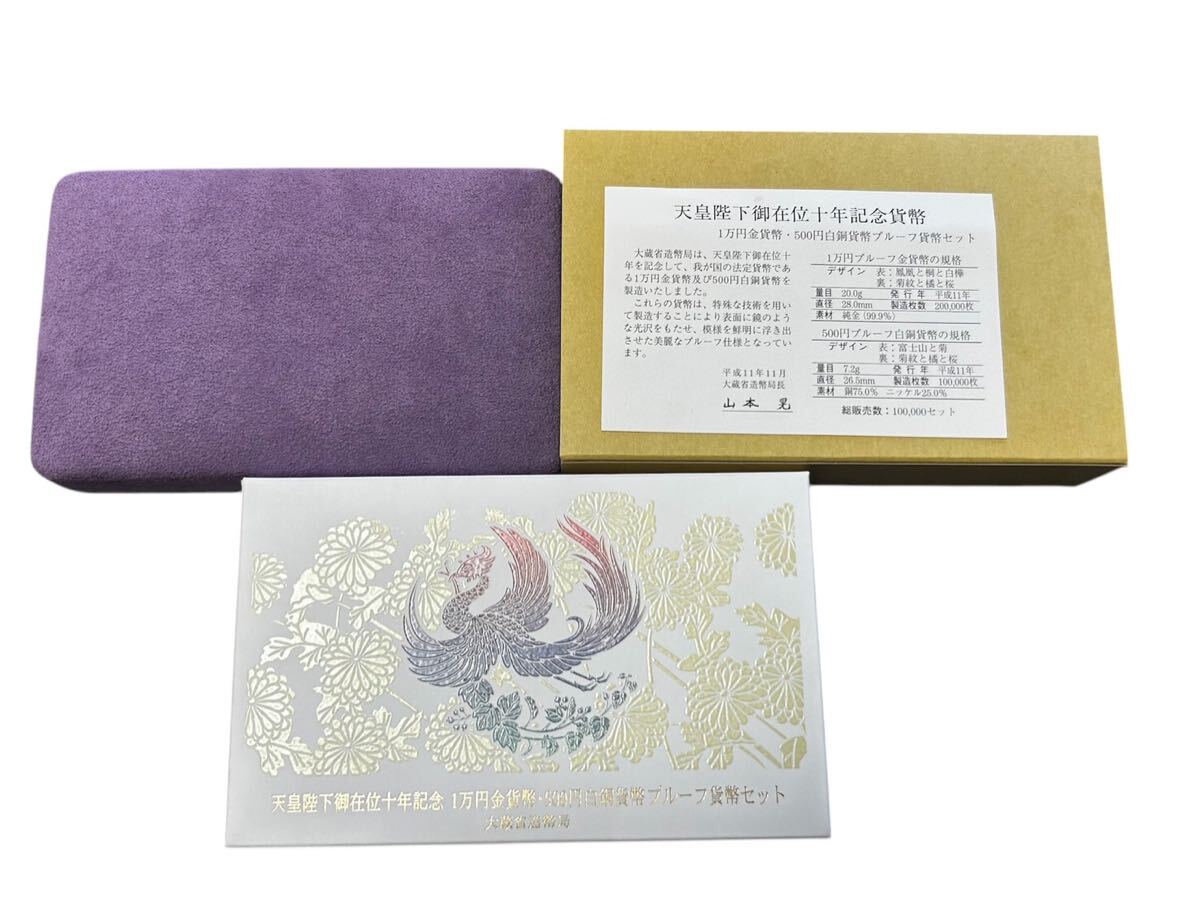 天皇陛下御在位10年記念貨幣 1万円金貨 500円白銅貨 プルーフ貨幣セット 平成11年 地金 資産 造幣局製造 純金 20g K24 記念 日本国 收藏