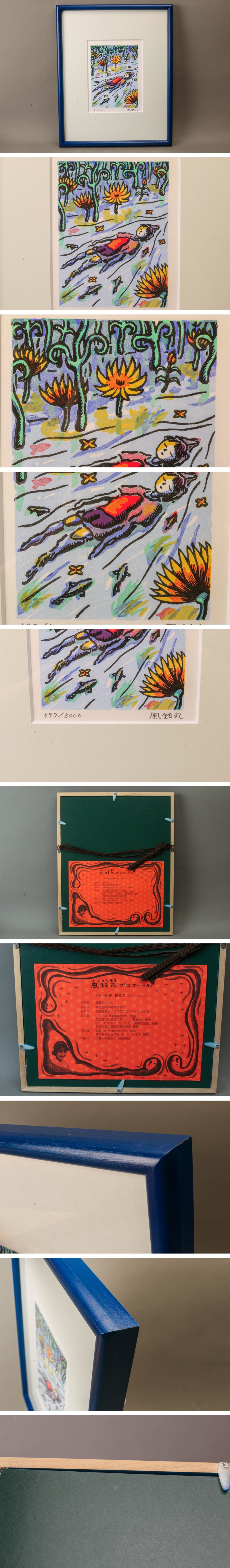 【SAG】風鈴丸(牧野修三子) 『再生の川』597/3000 リトグラフ 直筆サイン 額装 本物保証 收藏