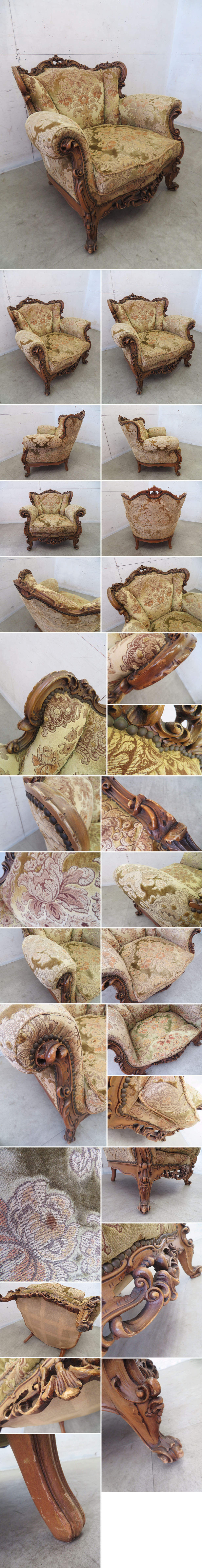 ■P745■美品■イタリア製■ロココ様式■金華山張り■単鋲打ち■エレガント■1人掛けソファ/1PSOFA■ルイⅩⅤ/ルイ15世■透かし彫り 收藏