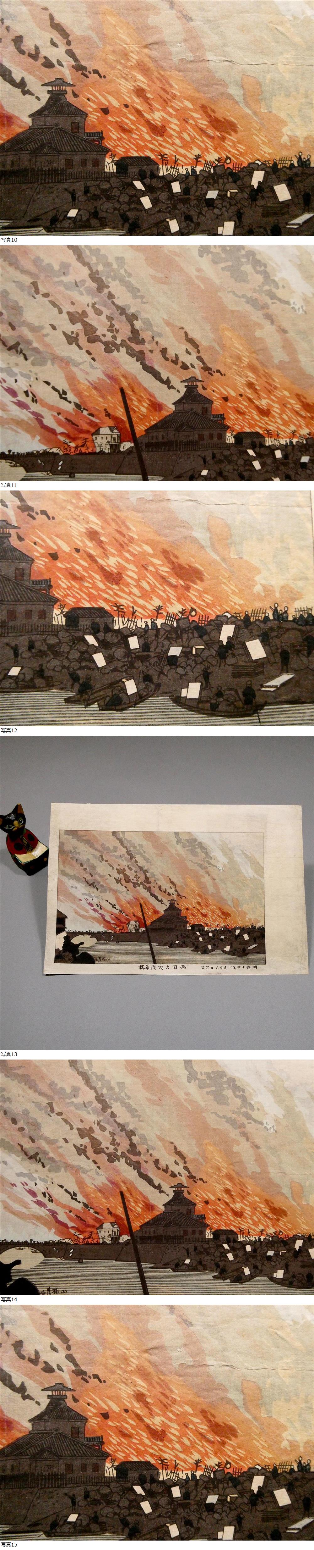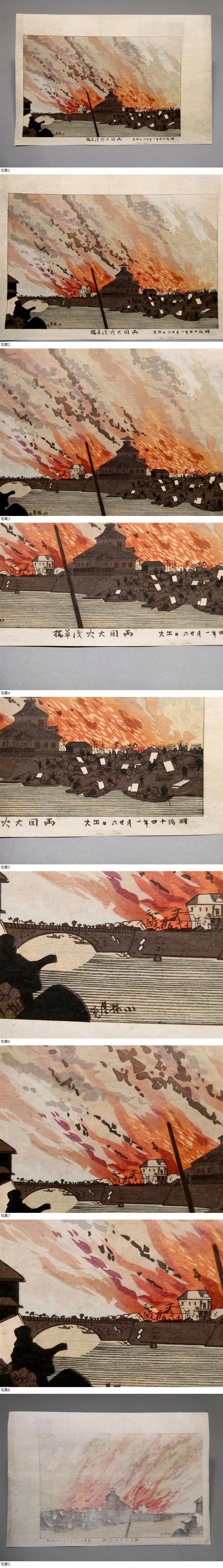 小林清親◆両国橋 大火の図◆光線画◆明治時代 木版画作品「明治十四年一月二十八日出火 両国大火浅草橋」■芳年 井上安治 巴水 吉田博 18 收藏