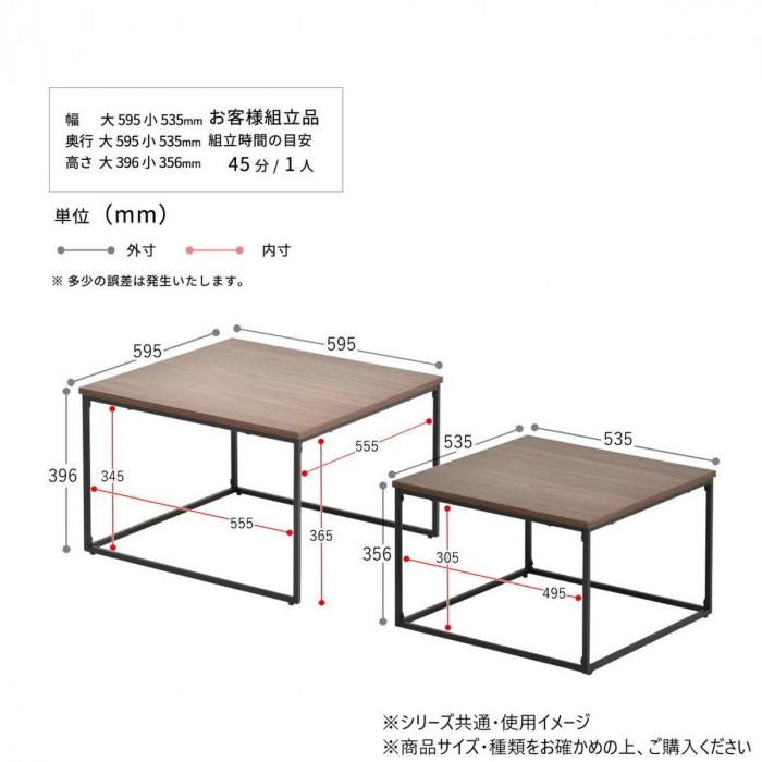 | 仕様 | 粉体塗装 耐荷重 天板(大):約25kg 天板(小) :約25kg 組立(1人):約30分 |