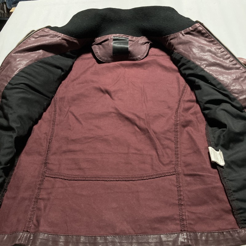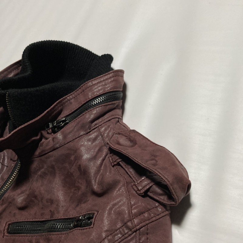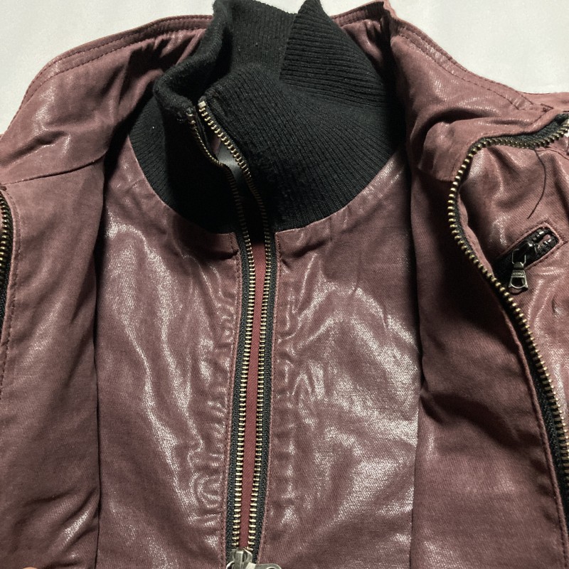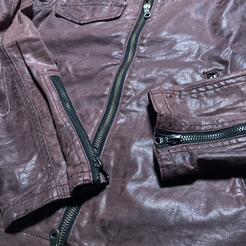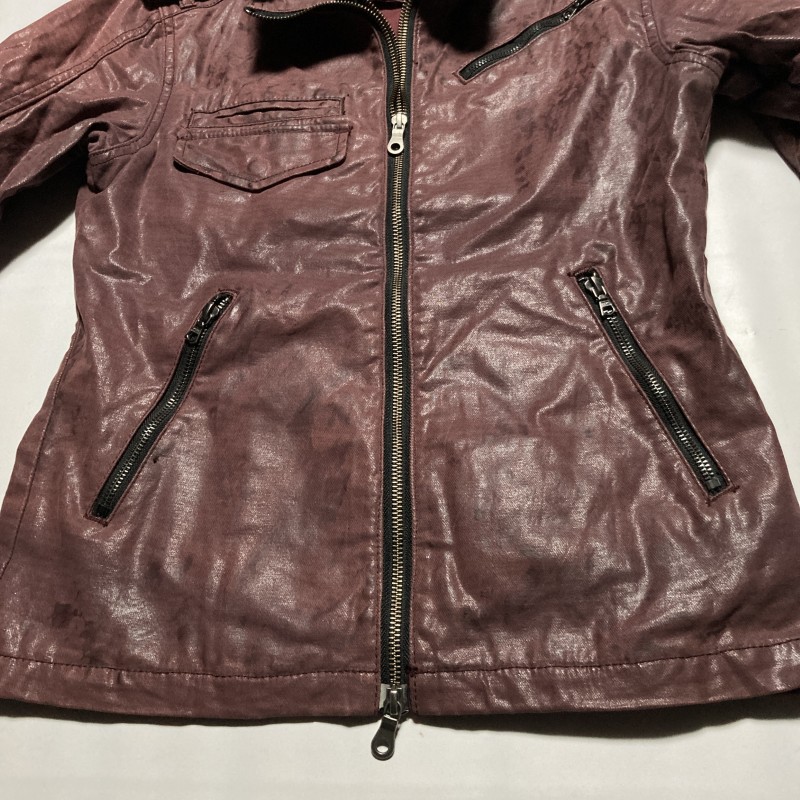 MIDAS★00s archive★Y2K gimmick★光沢ムラ加工 レイヤード二重ZIP ライダースジャケット ブルゾン ストレッチ 紫 M ミダス ヴィンテージ 收藏