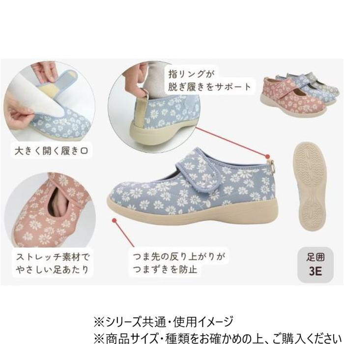 | やさしく包み込むフラワーシューズです。室内からお散歩、お出かけ用としてもお使いいただけます。外反母趾の方にもおすすめのやさしい足あたり。衝撃吸収・屈曲性に優れた靴底で、屋内・屋外でご使用できます。かかとの指リングが脱ぎ履きをサポートいたします。 |