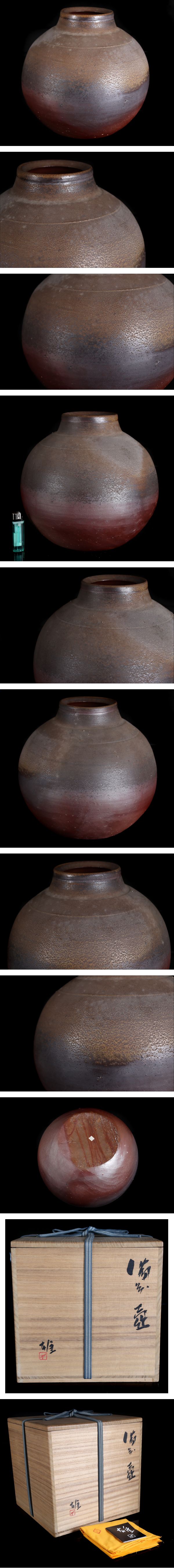 希少 大作 人間国宝 藤原雄 晩年期 備前 窯変 大壷 大花瓶 高さ27㎝ 共箱 本物保証F428 收藏