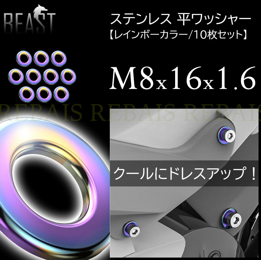 今なら送料0円 ステンレス 平ワッシャー M8×16×1.6 10枚セット パープルレインボー 收藏