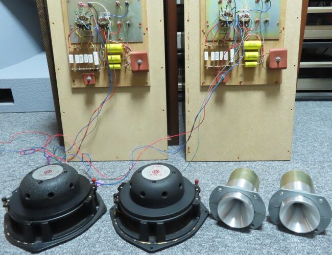 | ●エンクロージャー 〇発売から50年以上の時の経過がありますので、経年による僅かな擦り傷は見られますが、角打ちなどの目立つ大きな傷無く、底面も含め非常に綺麗な希少な個体です。リアルウッドであるウォールナットの綺麗な木目を損なわないよう、表面を整え、自然な色合いになるよう専用のオイルで仕上げてあります。 〇サランネットは穴やホツレ、ソリなどなく良好な状態です。クリーニングしてあります。 ●ウーファーユニット L-200 〇100φの非常に大きなアルニコが採用されているL-200のウーファーは、センターキャップ内に定在波を考慮したウレタンが設置されています。このウレタンが加水分解を起こして、ギャップ内に細かなゴミが入りノイズが出ている物が殆どです。 〇加水分解を起こした内部のウレタンは、センターキャップを時間をかけて丁寧に外し、磁気回路、ギャップ、センターキャップ内などの全てをしっかりと清掃し、加水分解を起こさないウレタンに変更して、ノイズを徹底除去してあります。本来の性能にして綺麗に仕上げてあります。 〇センターキャップや振動板、エッジの傷無く非常に綺麗な希少な状態です。 ![]() ●ホーントゥイーターユニット H-70HD 〇腐食や傷無く全体的に非常に綺麗な希少な状態です。このホーン型トゥイーターは1970年代、当時7万円の受注生産品で個別販売されていた高級ホーントゥイーターユニットです。 〇アルミ丸棒から1本ずつ削り出して生産され、ダイアフラムには、軽さと高温多湿への耐用性を考慮して高純度のマイラーを使用、磁気回路は低域、高域と高級アルニコマグネットが採用され、それぞれ綺麗な状態を維持しています。 ●ネットワーク 〇ネットワークは全ての接点部分を磨きクリーニングを行っています。音圧の変換時などのガリは一切ありません。 〇経年により劣化が見えた電解コンデンサーは、全て高級素子であるBENNIC製の大型フィルムコンデンサーに変更してあります。BENNICは高価なのはもちろん、同じ定数の素子を手に入れるのに苦労しました。 ![]() ●実測特性データー 〇視聴と機械的計測をし最終確認を行っています。 〇希少な純正パーツを活かし、素子は劣化の多いコンデンサーのみの交換ですが、実際に特性を計測してみなければ、コンデンサー以外のパーツの劣化を見つけることはできません。 〇インピーダンス特性検査を行うことで、エッジの仕上がりやダンパ―の劣化などで左右で差があると、大きくグラフのズレとして現れ、耳では判断できない僅かな誤差も見つけることができます。又ネットワークも同様に、コンデンサの容量抜けや抵抗の破損などの耳では判断できない異常もグラフのズレとして見つけることができます。 〇純正の公開されている特性表ともしっかり合っています。左右出力差が非常に少なくとても安定しています。 〇下記にて特性補償付きです ![]() 〇ローディの代表作として有名な2ウェイスピーカーシステムです。発売は1969年に発売されたモデルで70年代にはペア価格17万円の高級モデルです。 〇ギャザードエッジによって伸び縮みが一定で、ひずみを低減し、レスポンス高く細かな再現力をもって綺麗な音を聞かせてくれます。 〇能率は88dBなのでライブのような大きな音は出せませんが、音のある最高の一時を楽しむことができます。 〇名機中の名機で末永くご利用頂けるシステムです。宝物を次の世代へ残せる綺麗な状態です。 〇写真で気になる部分がございましたら、気楽に質問をお願い致します。 〇見えない死角がないよう写真に写してあります。画像を拡大しご確認をお願い致します。 | |||