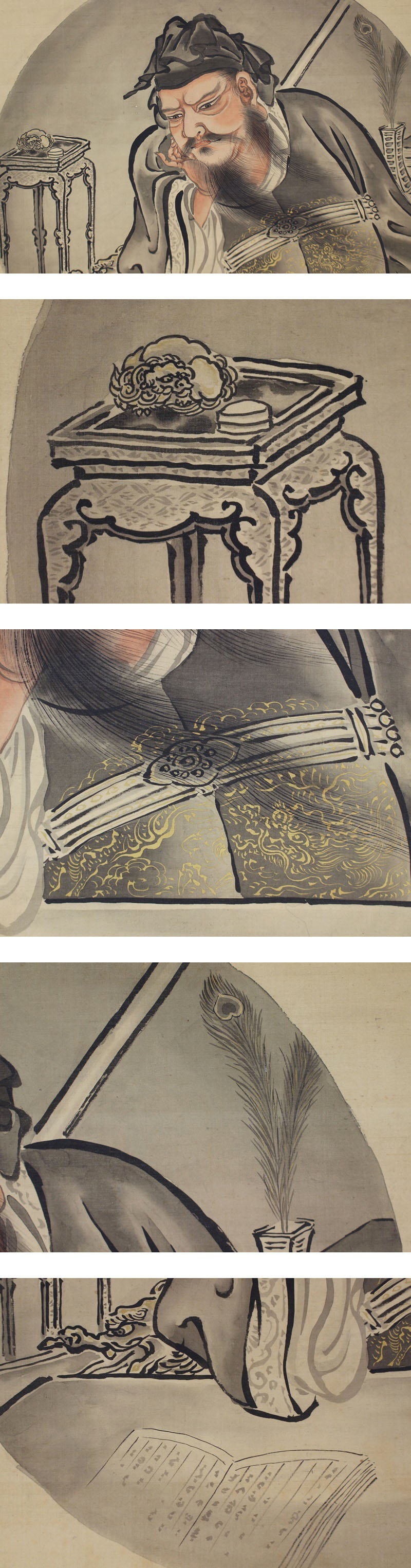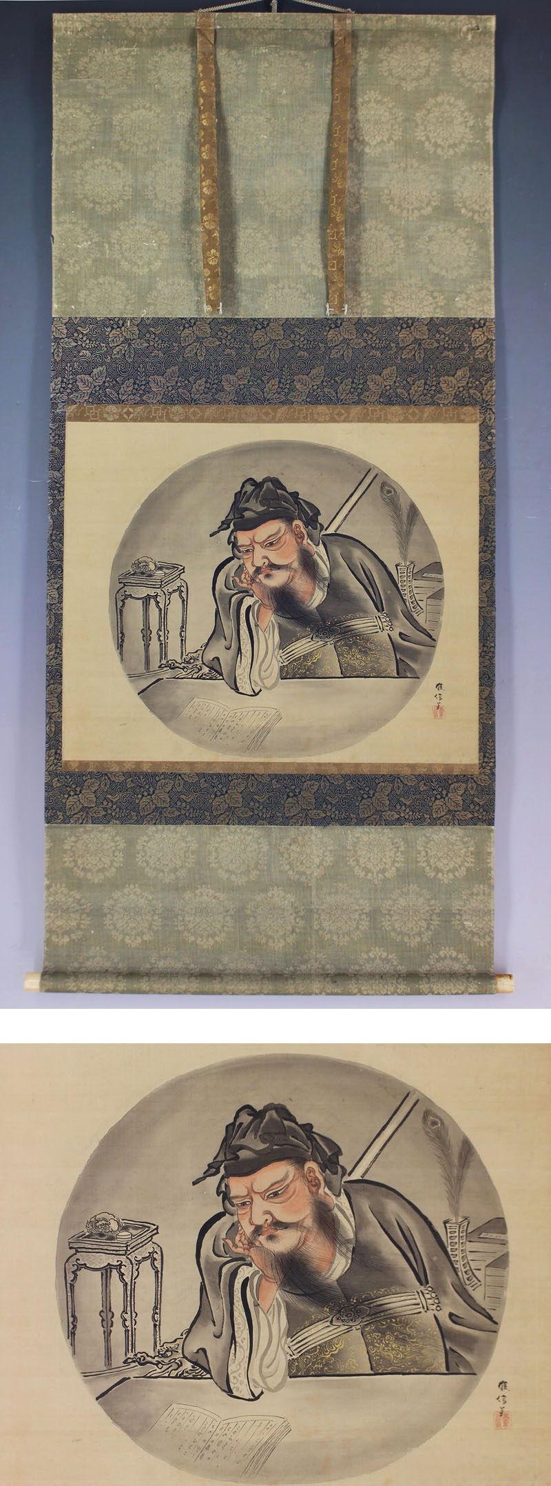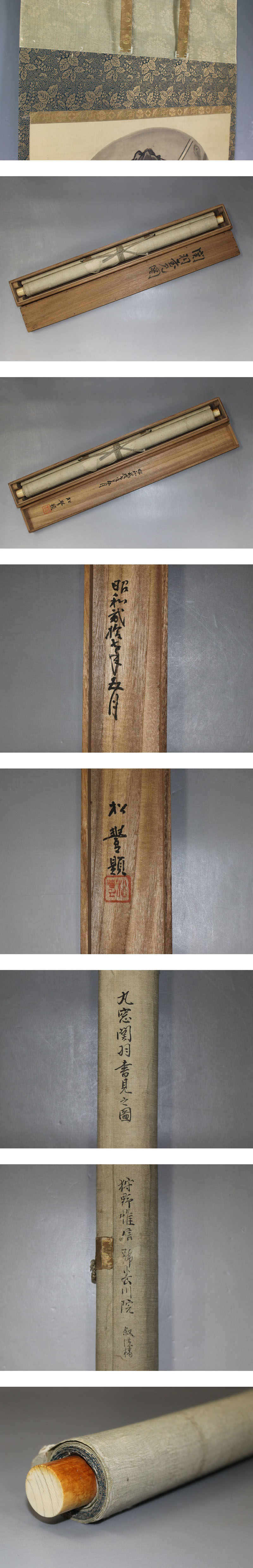 | №1602181【真作】狩野養川院(惟信)【関羽書見之図】◆絹本◆識箱◆掛軸 | |