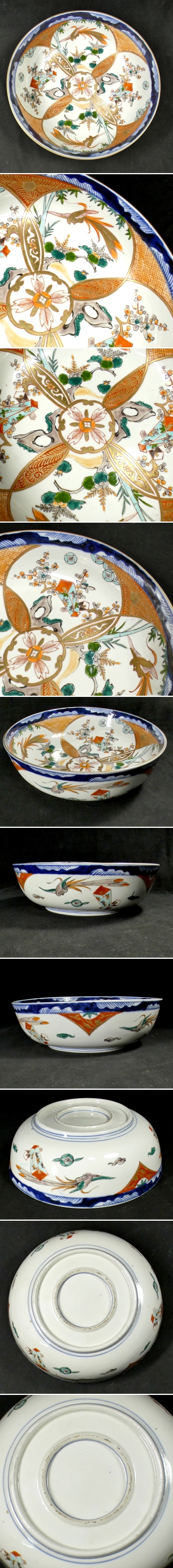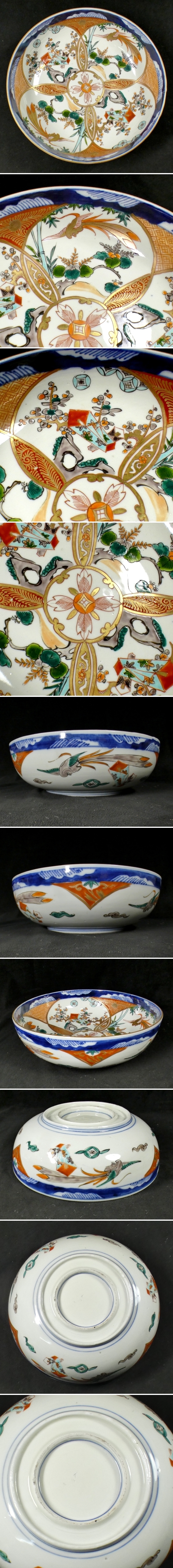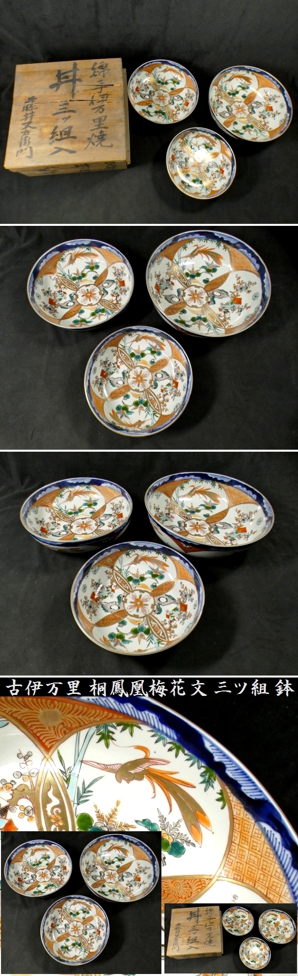 【 恵 #0706】 古伊万里 華やかな桐鳳凰梅花文 色絵 染錦 三ツ組 鉢 共箱あり 收藏