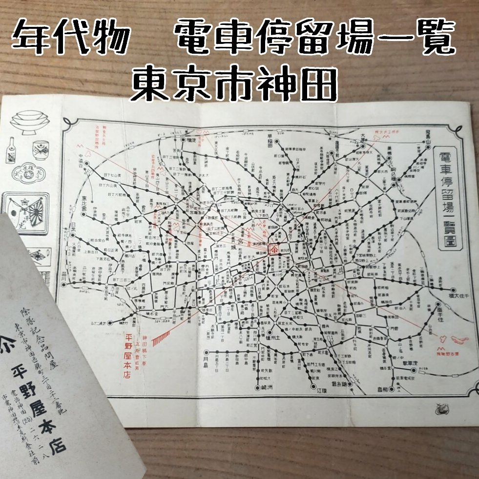 年代物 電車停留場一覧 除隊記念問屋 平野屋本店 東京市神田橋 鉄道 電車 アンティーク 古地図 骨董 資料 当時物【ライトi4138】 收藏