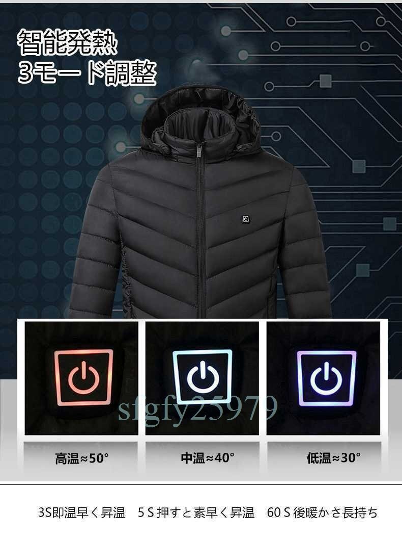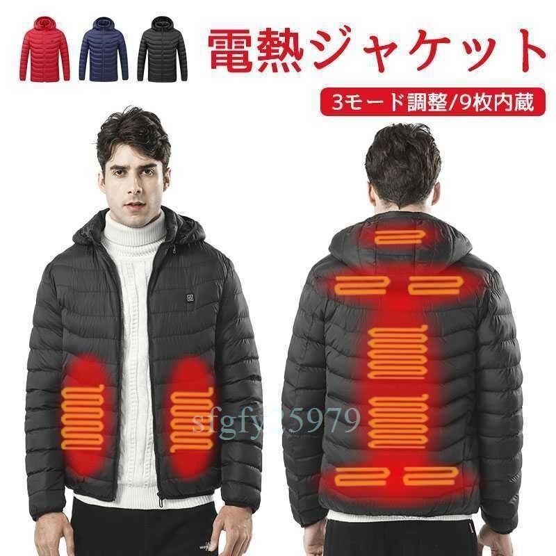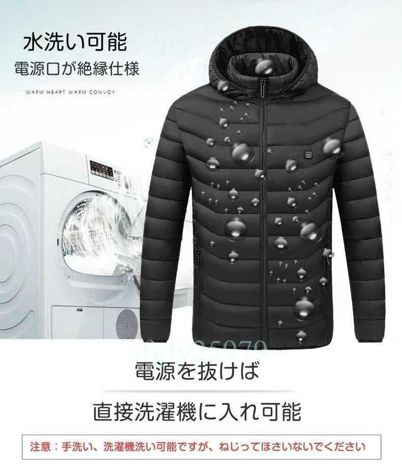 S063☆9つヒーター 電熱ジャケット バッテリー給電 加熱ジャケット 3段階調温 ヒーター usb 電熱ウェア 3XL 收藏