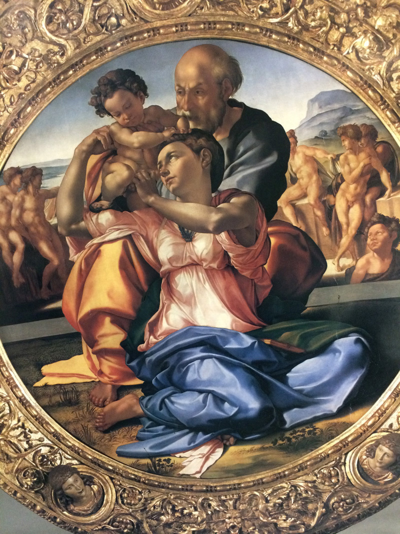 ミケランジェロの「トンド・ドーニ」とその修復:フィレンツェ、ウフィッツィ美術館、ナイオビの広場、