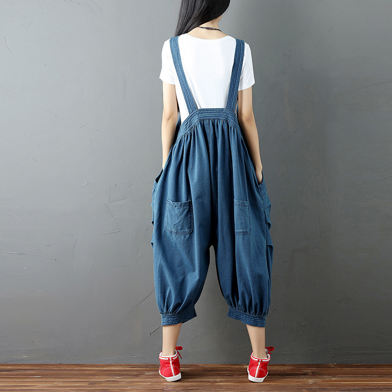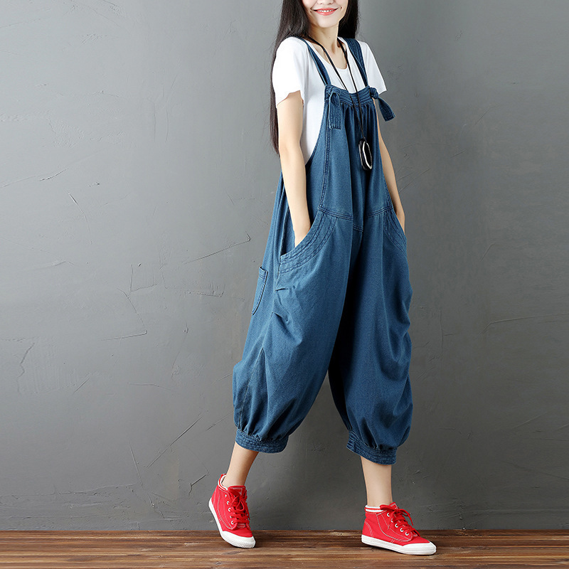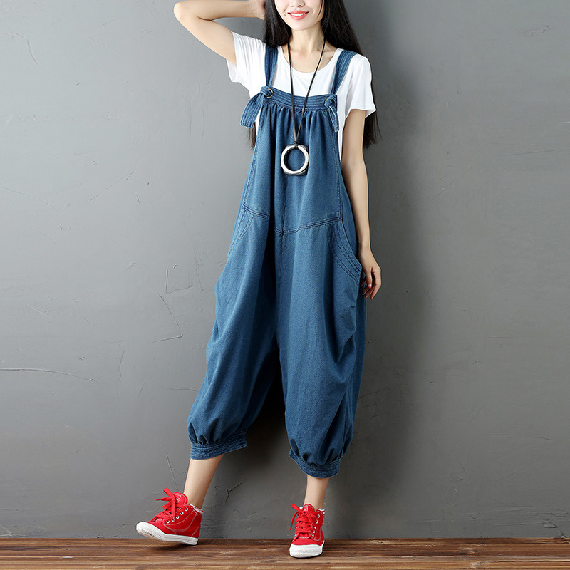 夏新品★レディース オーバーオール 綿 サロペット 吊りズボン ワイドパンツ オールインワン ゆったり ブルー F 收藏