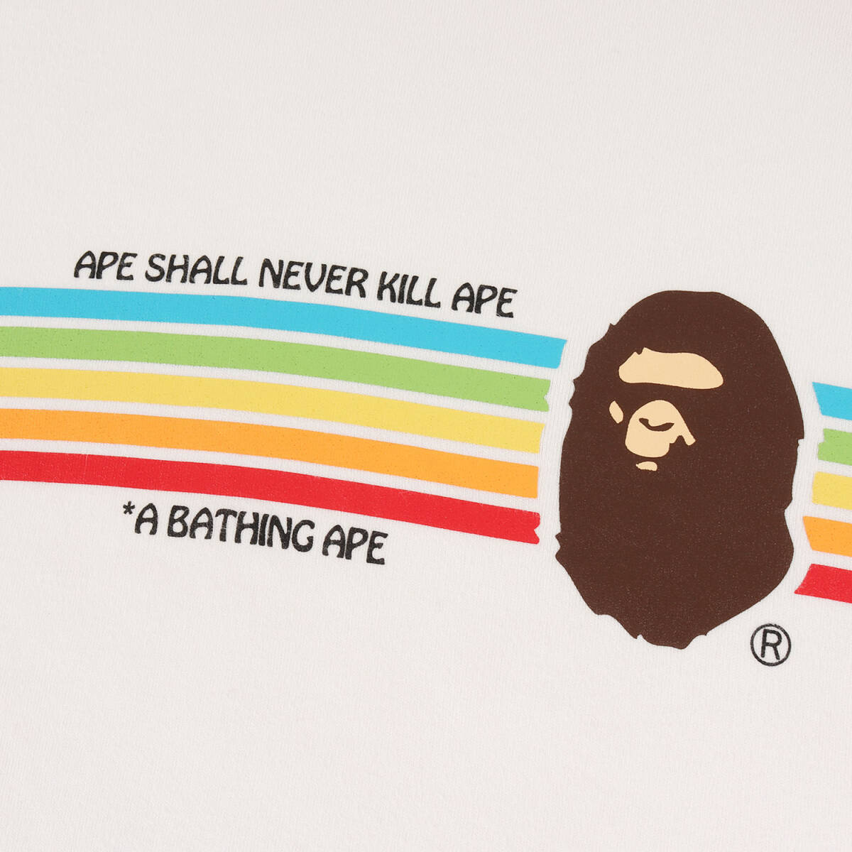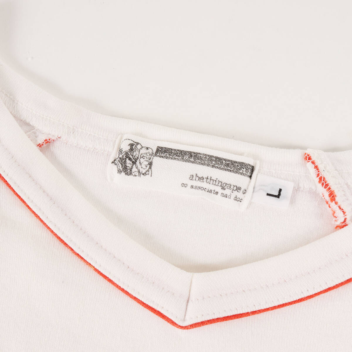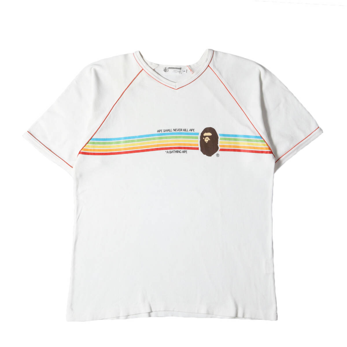 A BATHING APE ア ベイシング エイプ Tシャツ サイズ:L 00s レインボー猿顔 ラグラン パイピング ヘビー Vネック Tシャツ ホワイト 收藏