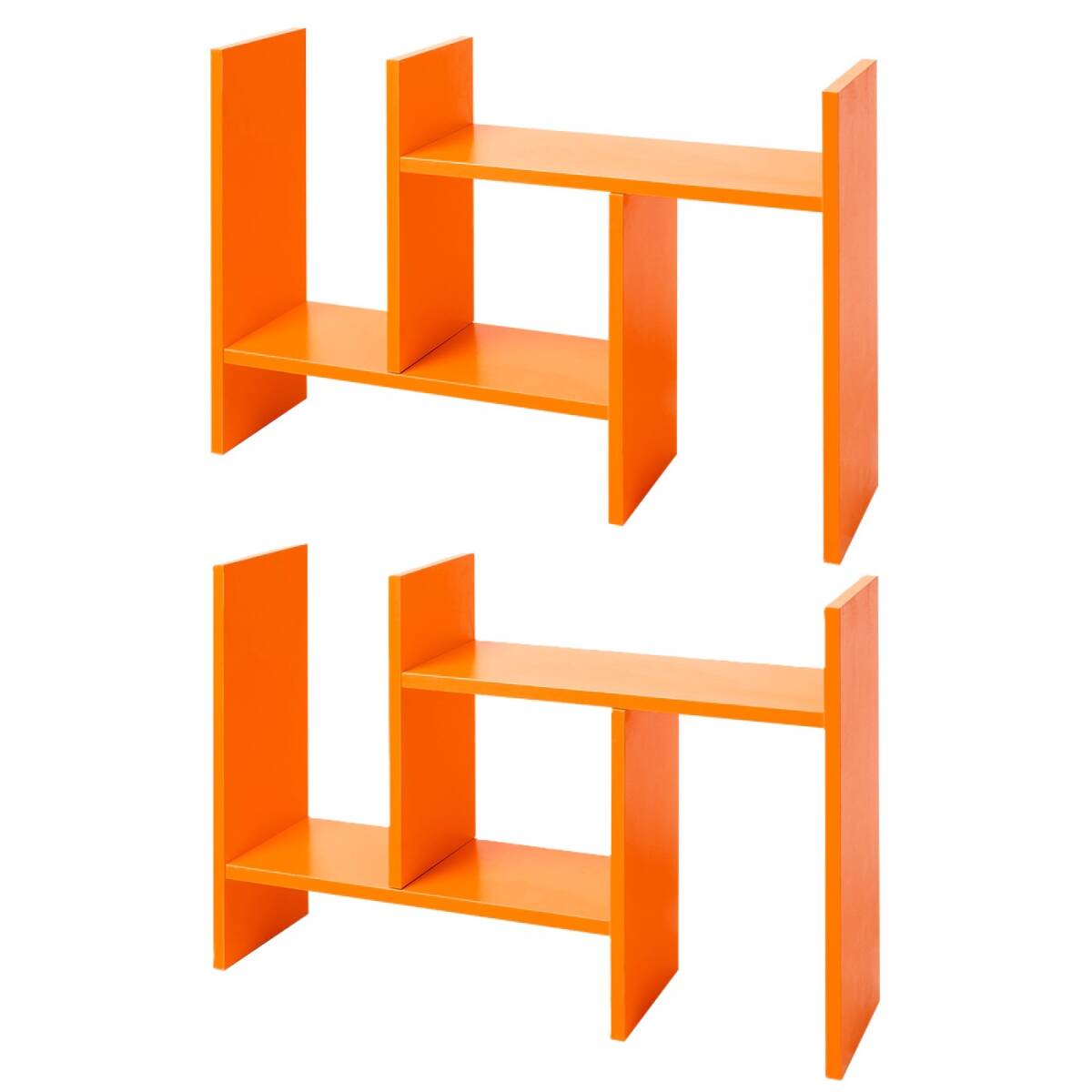 【2個セット】卓上ラック オレンジ デスク上置棚 スライド式 横幅伸縮 木製 スパイスラック CDラック 机上ラック 本立て 收藏