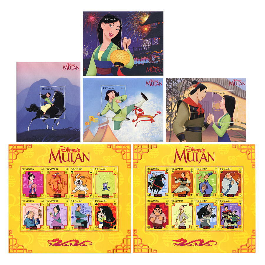 ディズニー ムーラン 切手8枚1シート2枚&小型シート4枚 発行国Gambia 1998年発行 未使用 收藏