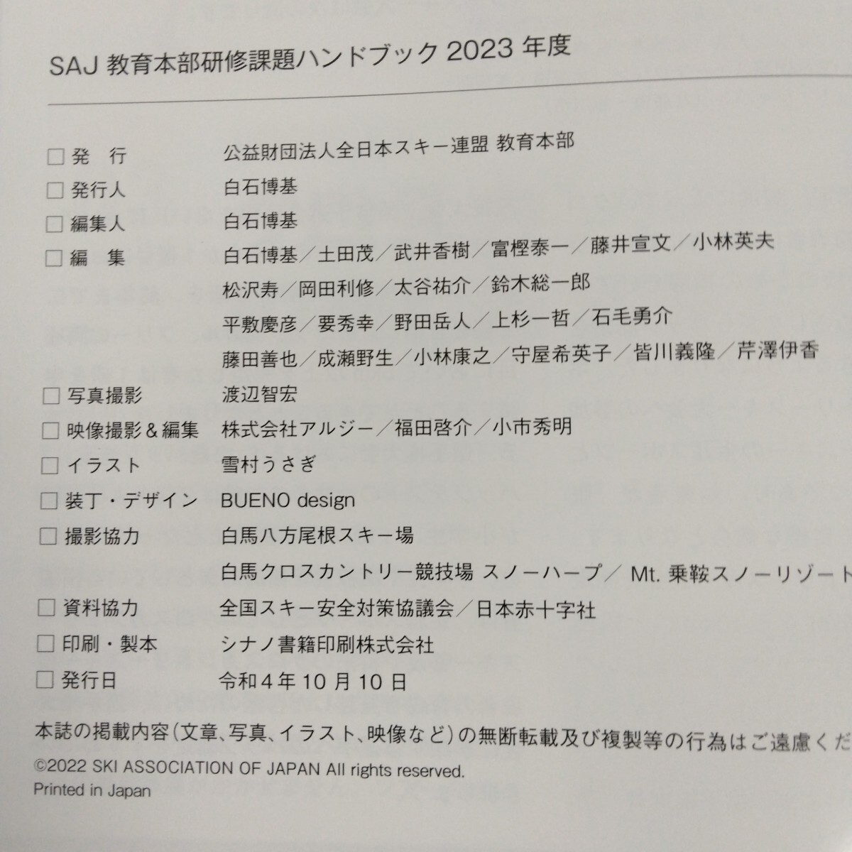 Bb-182/SAJ教育本部研修課題ハンドブック 令和4年 10月10日発行 2023年度 公益財団法人全日本スキー連盟教育本部/L6/70207 收藏