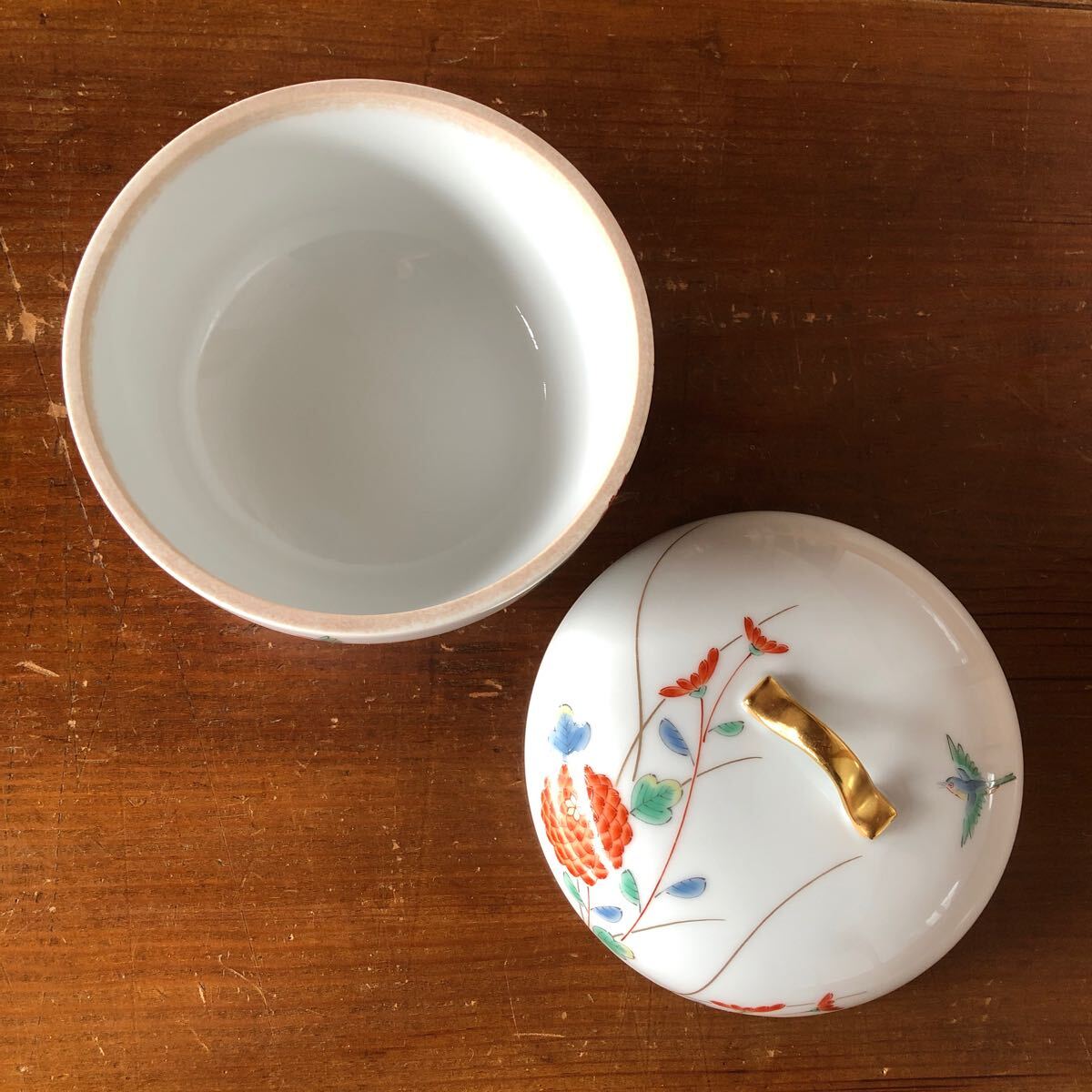 〈送料無料〉深川製磁 蓋物 菊小鳥 菓子器 ボンボニエール 小鉢 金彩 蓋つき小鉢 丼 小丼 深川 深川製 收藏