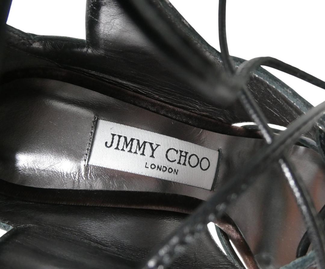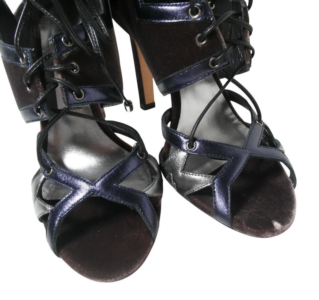 新品同様 JIMMY CHOO ジミーチュウ 36 約23cm DENNY100 ミンクベルベット レースアップ オープントゥ ハイヒール サンダル ブーティ 茶 紺 收藏