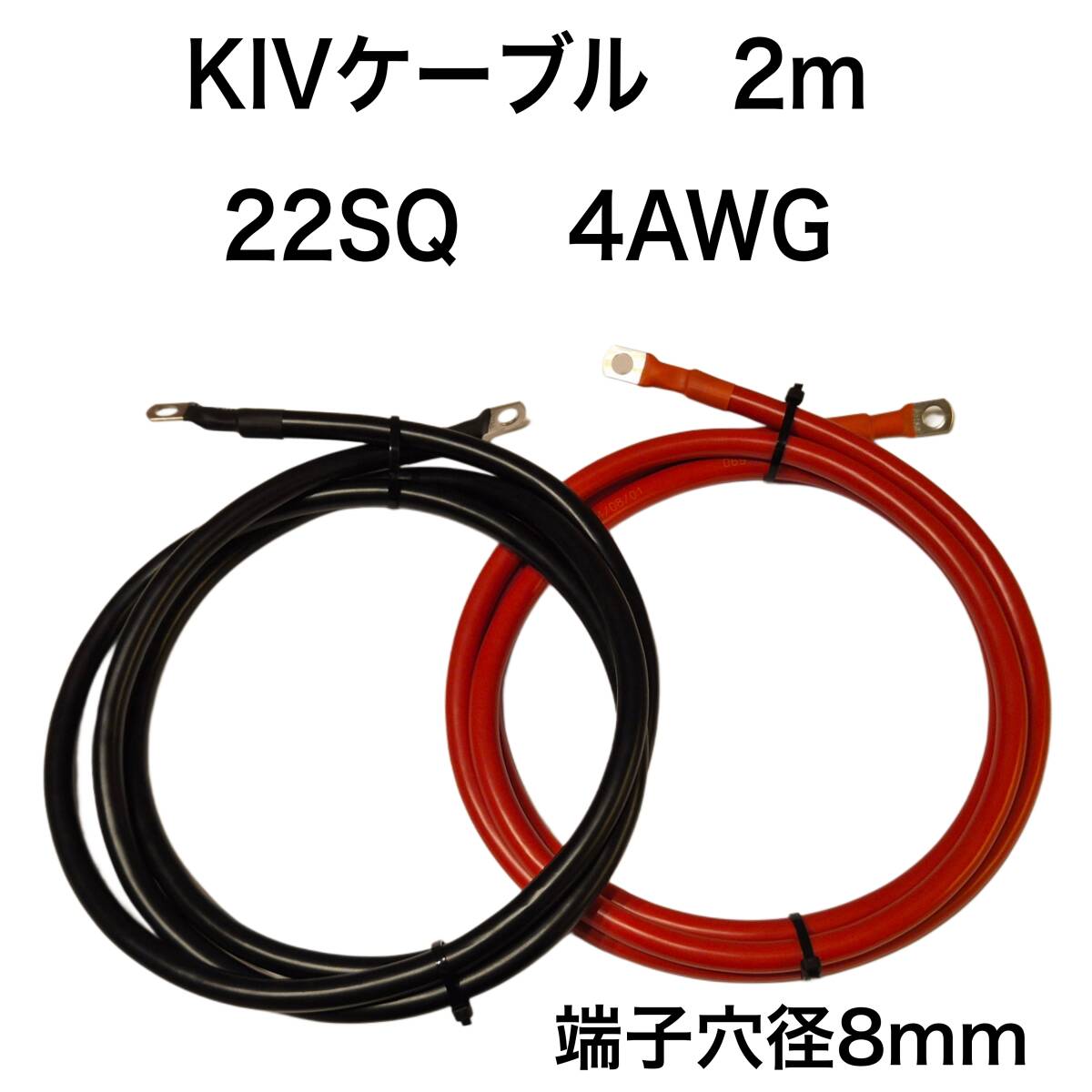 2m KIV赤黒2本 22SQ 4AWG バッテリーケーブル 8㎜端子接続防水加工済み (600 V 115A)管理番号589 收藏