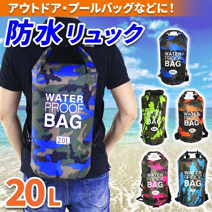 防水 プール リュック バッグ 子ども 男の子 女の子 小学生 中学生 おしゃれ キャンプ アウトドア スイミング 水色 迷彩 大容量 20L M070 收藏