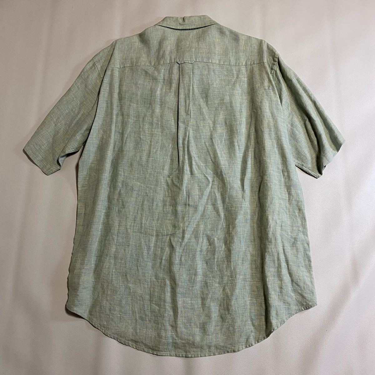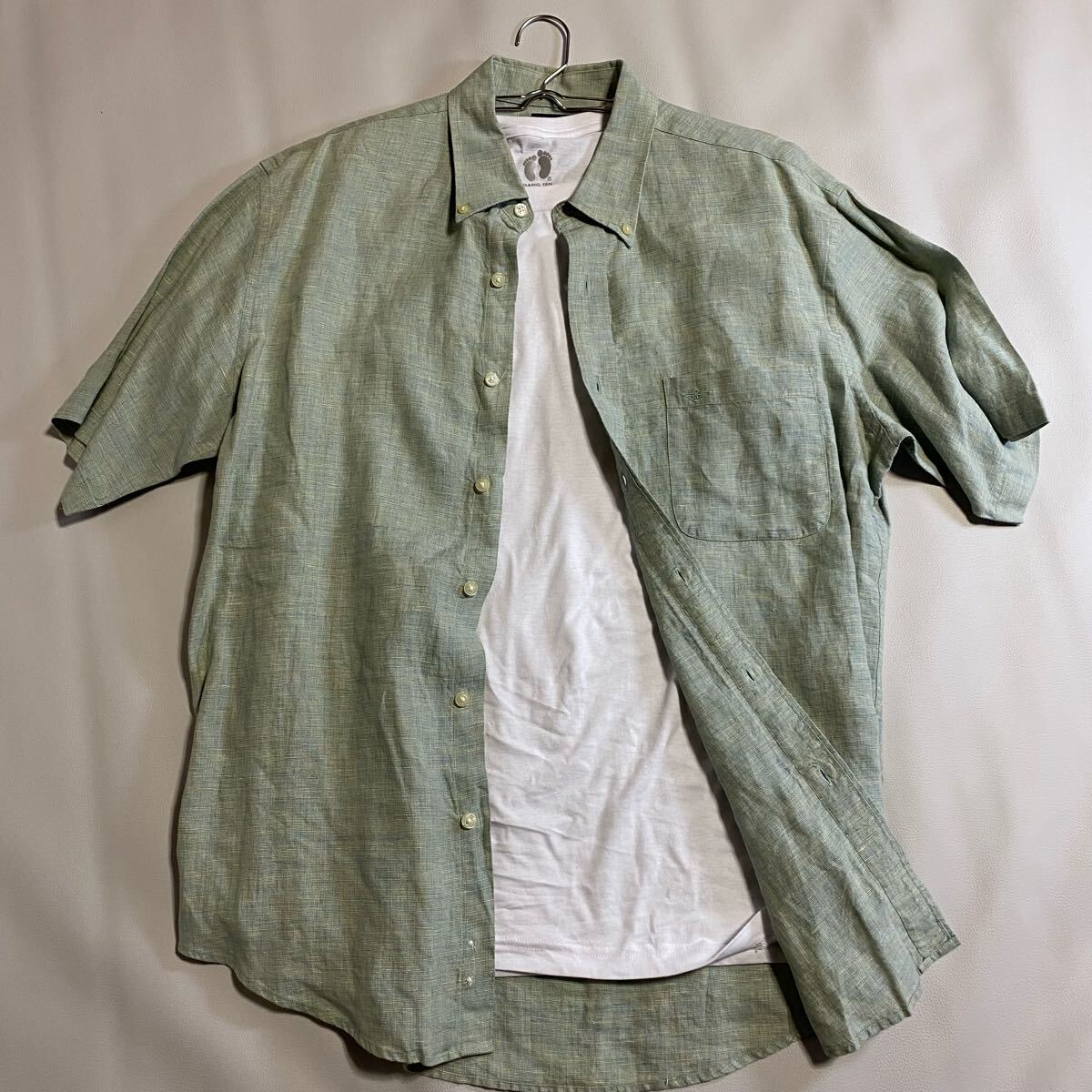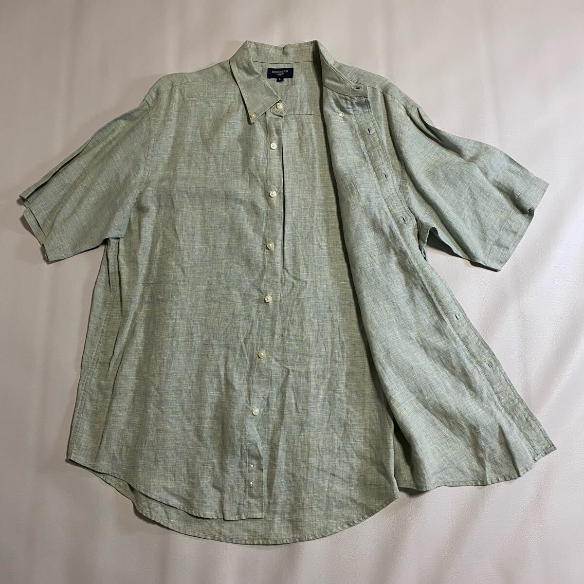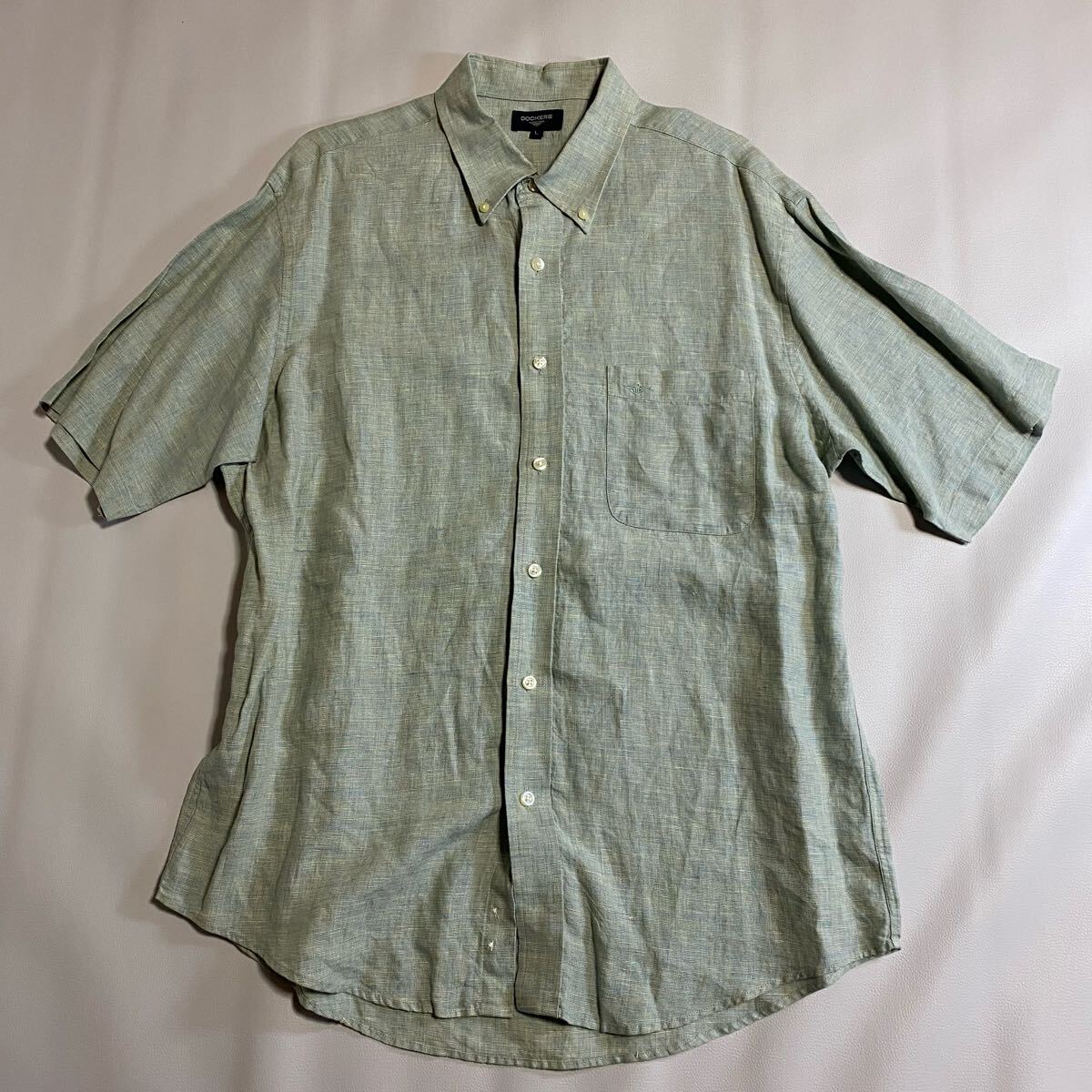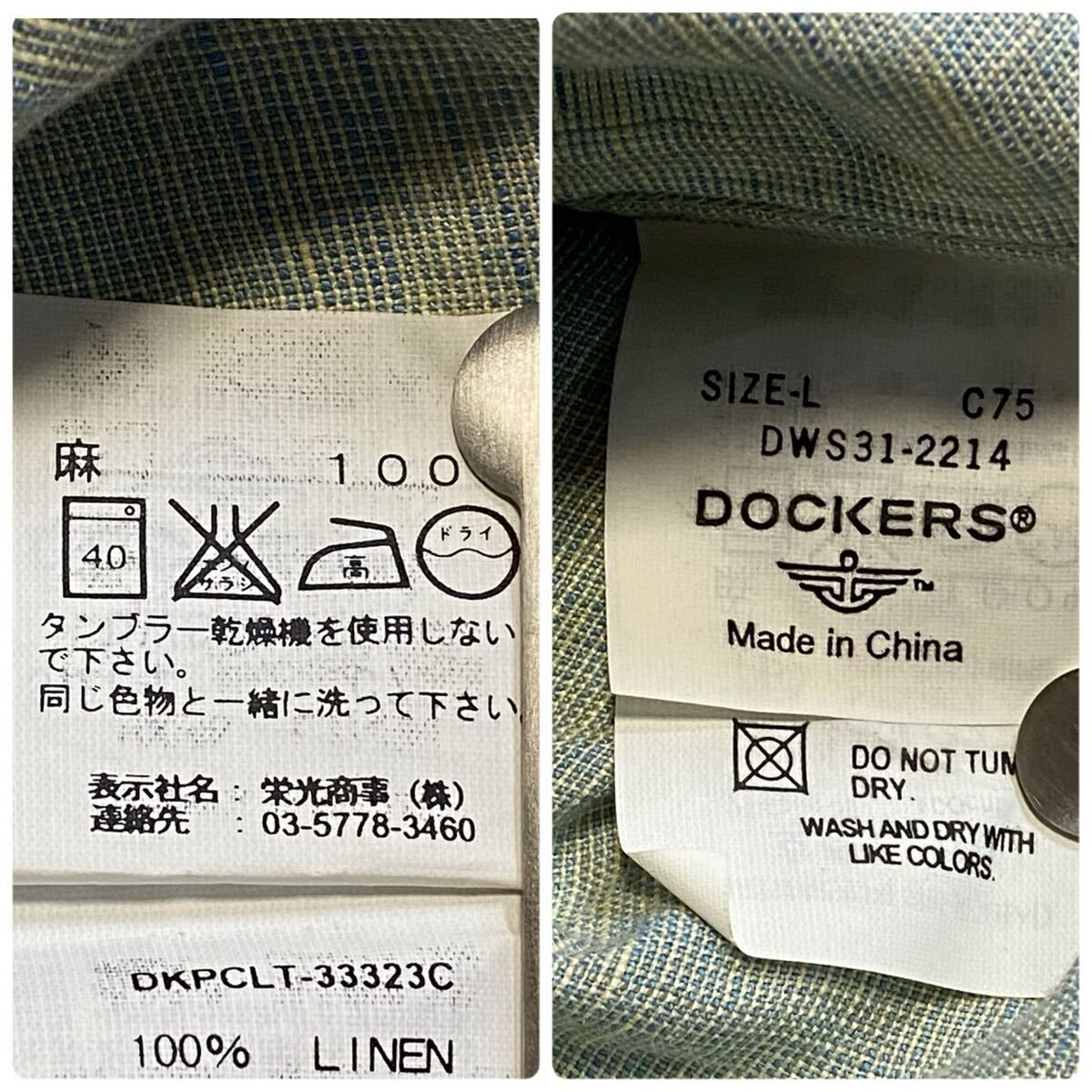 DOCKERS ドッカーズ 半袖シャツ Lサイズ モスグリーン 麻100% リネンシャツ ボタンダウン 天然素材 抗菌 速乾 大きいサイズ メンズ 收藏