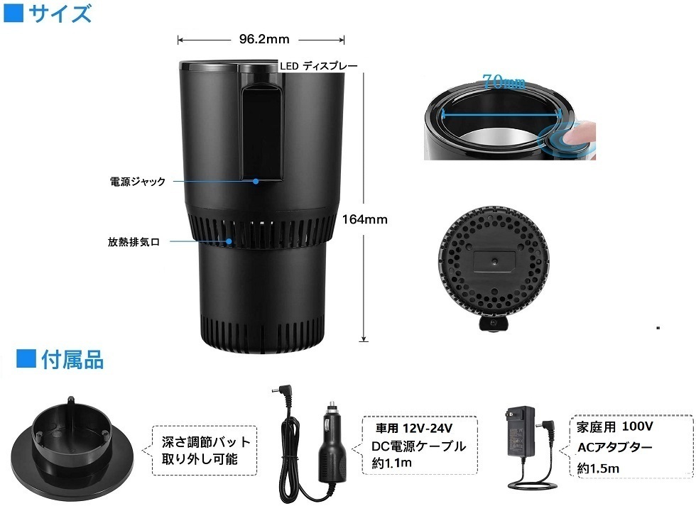 保冷 保温ドリンクホルダー 12V/24V/家用100V対応 ドリンクホルダー カップホルダー ドリンクホルダー 車載ホルダー ドリンク ブラック 收藏