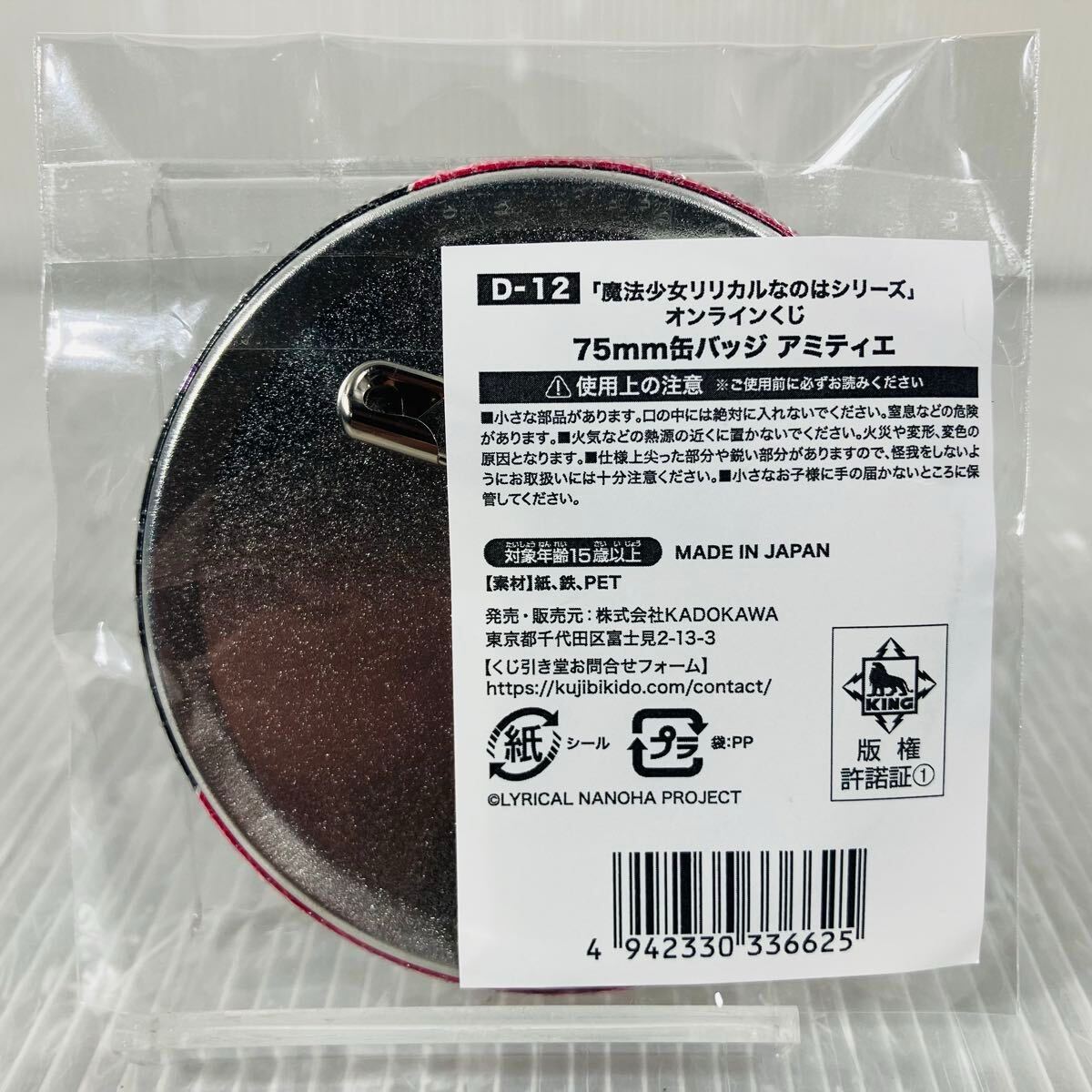KG5●魔法少女リリカルなのはシリーズ くじ引き堂 オンラインくじ 75mm缶バッジ アミティエ D賞 收藏