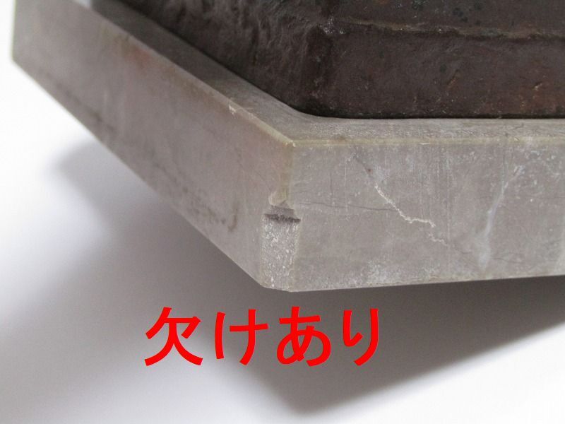 | 商品説明 | 【必ずご確認ください】 落札から24時間以内に取引連絡のいただけない方、72時間以内に入金できない方の入札はご遠慮下さい。 【重要】 商品説明・画像・注意事項・発送詳細を全てご確認及びご納得のうえでのご入札をお願いいたします。 また、【現状渡し】となります事を十分ご検討いただいたうえでのご入札をお願いいたします。 トラブル防止の為、少しでも入札に不安がある方、神経質な方のご入札はご遠慮下さい。 ご理解、ご了承の程、宜しくお願い致します。 【特記事項】 画像にてご判断できる方のみ、ご入札下さい。 若干の経年感や細部に汚れなどありますので、 あくまでも現状渡し、ノークレームにてご理解いただけます方のみ、 ご入札ください。 状態につきましては、画像にてご判断下さい。 ※付属品は画像にあるもので全てです。 ※その他、画像にてご判断下さい。 【実寸サイズ(約)】 W 125mm D 75mm H 200mm(台座含む) 重さ 1754g ★ご不明な点がありましたら、入札の前に必ず[質問欄]よりお問い合わせをお願いいたします★ |
