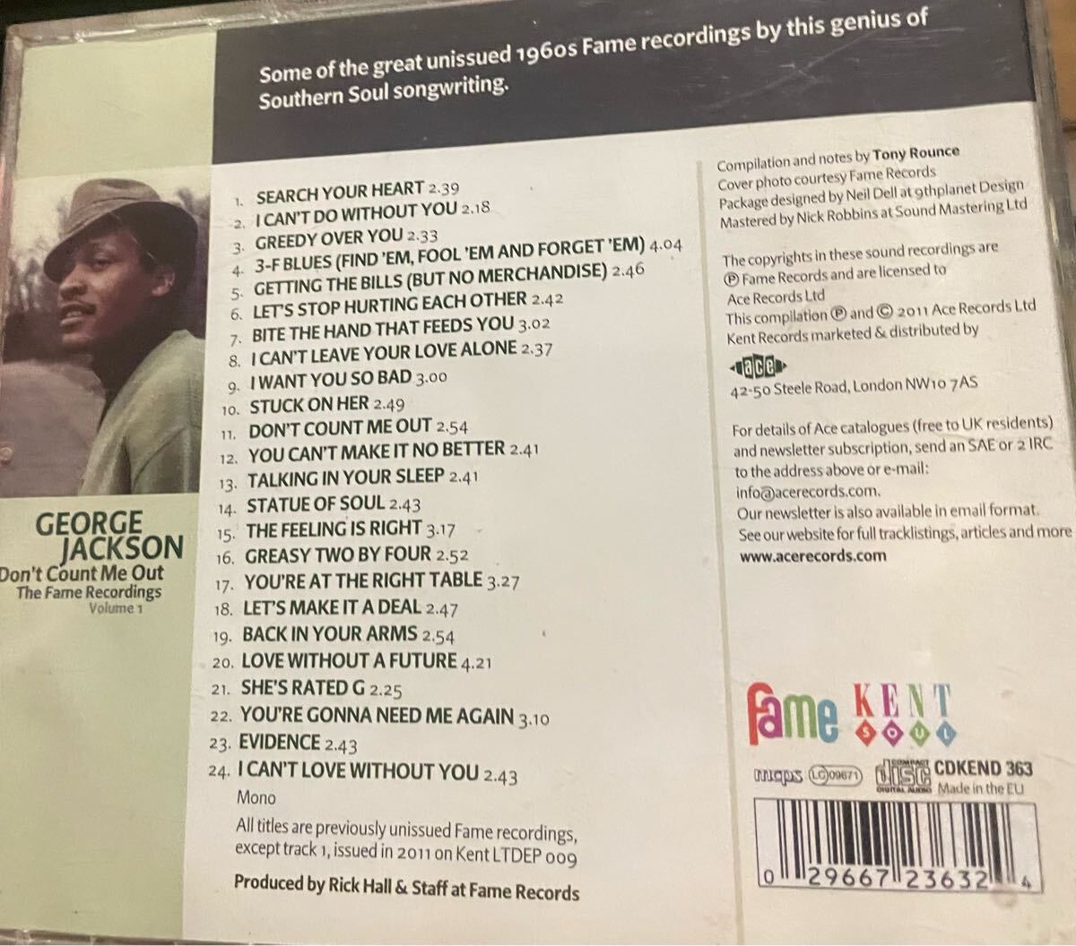 GEORGE JACKSON/Dont Count Me Out The FameRecordings Volume 1 CD 收藏