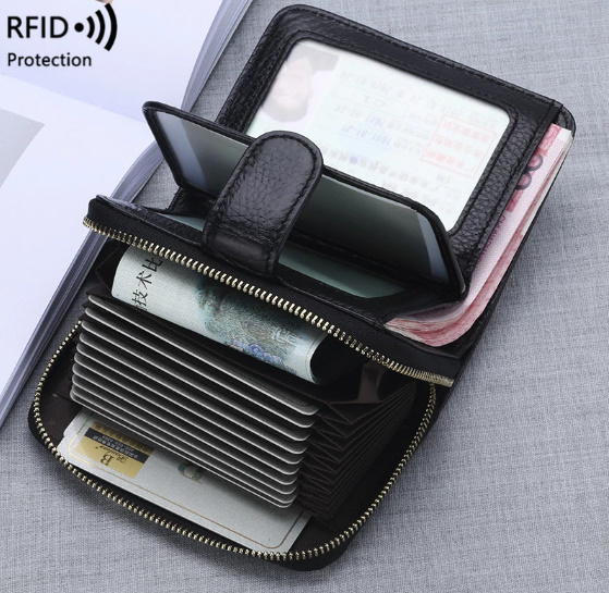 紳士 高級 革 レザー 二つ折り財布 財布 ジッパー付き ミニウォレット RFID 小銭入れ 大容量 カード 收藏