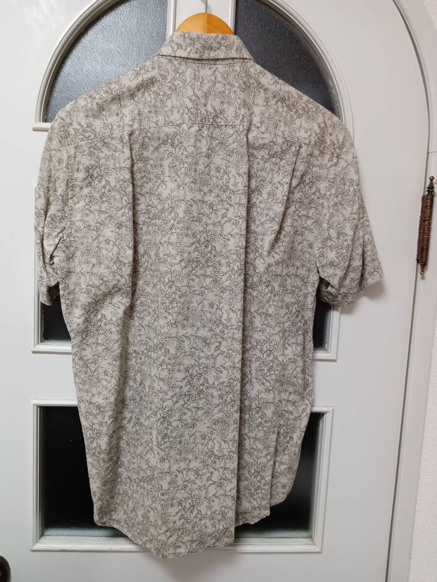 GUの半袖シャツです。素材は麻52%綿48%です。表示サイズはMで、着丈73、身幅52、袖丈22.5、肩幅43ほどです。素人採寸ですのでご参考程度にお願いします。コンディションは10中7以上はあると思います。