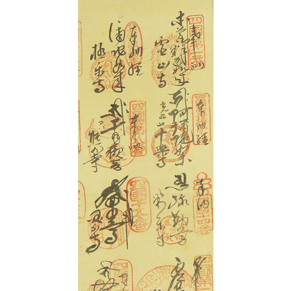 B-4721【真作】四国八十八ヶ所霊場巡拝記念納経 肉筆絹本淡彩 掛軸 戦前 昭和前期/曼荼羅 弘法大師 空海 印譜 御朱印 お遍路 古経 仏画 收藏