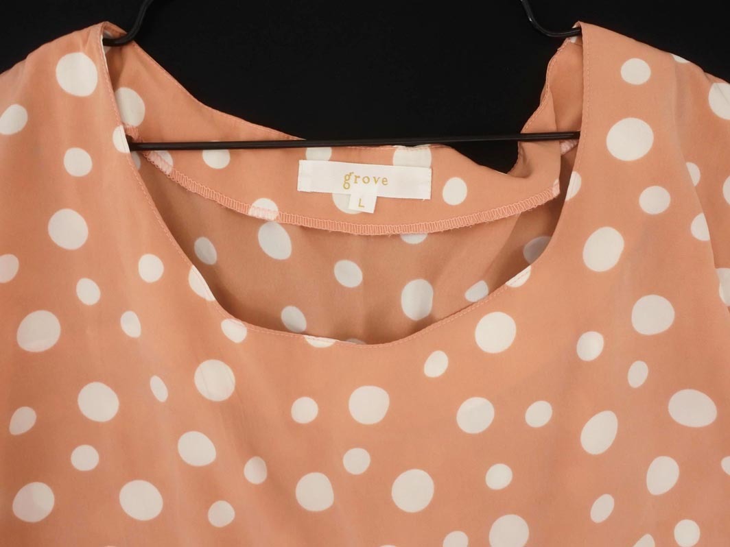 ネコポスOK grove グローブ ドット ワンピース sizeL/ピンクx白 ■◆ ☆ fgb1 レディース 收藏