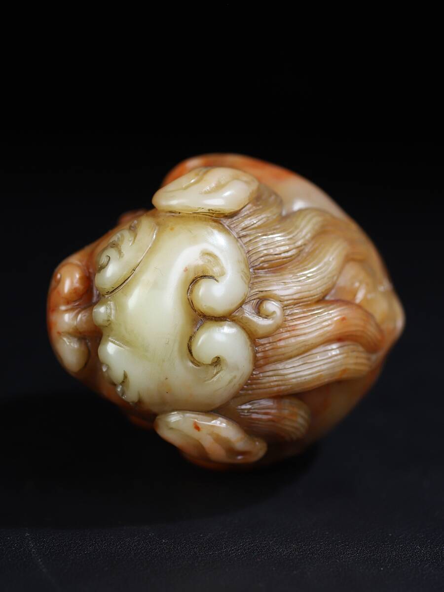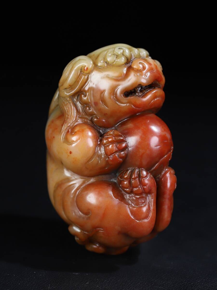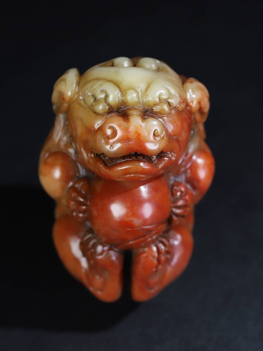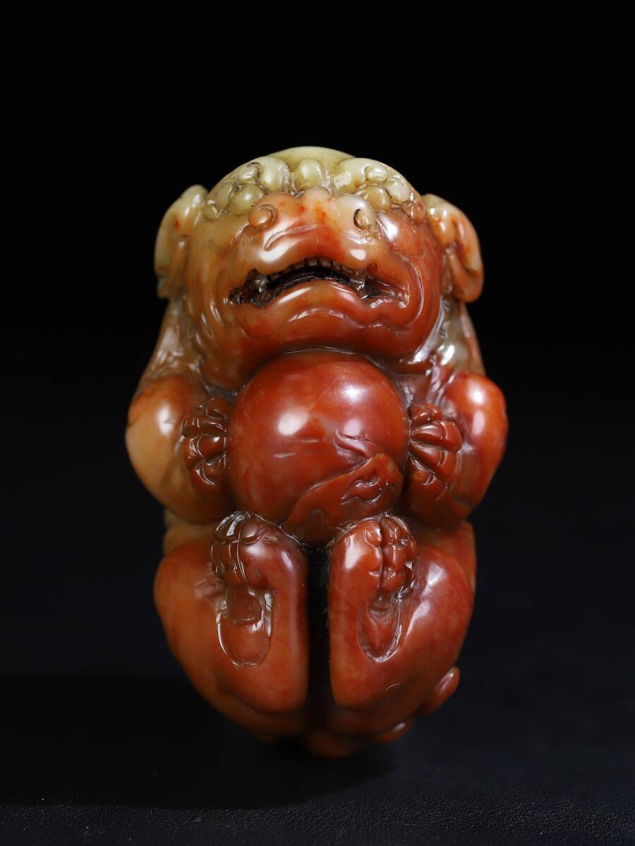 旧蔵 【 ライオンの転ガクアジサイ】 寿山石 彫刻 瑞獣 印鑑 古印材 天然石 純手彫 篆刻 極細工 希少珍品 中国古美術 古美味 fx715 收藏
