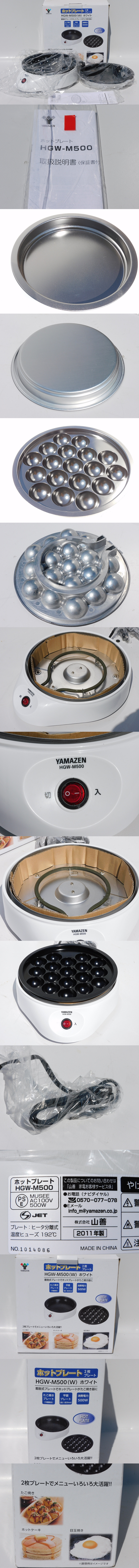 【d0059/1度も使っておらず新品同様/送料無料】YAMAZEN ホットプレート HGW-M500 ホワイト たこ焼き/ホットケーキ/目玉焼き 未使用 保管品 收藏