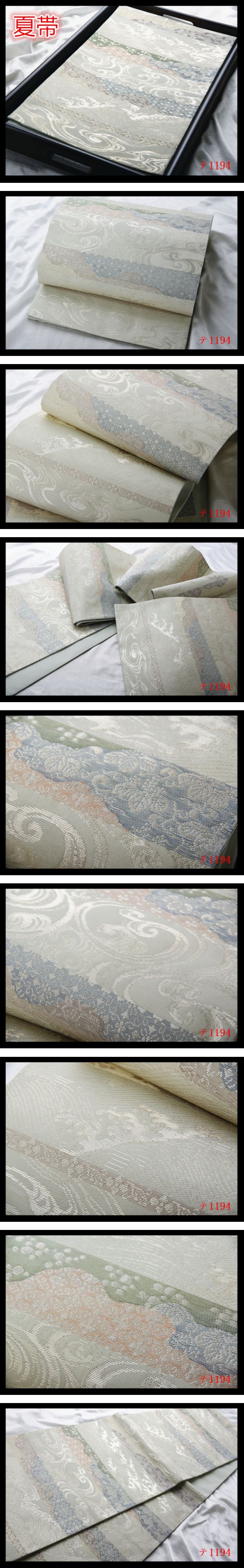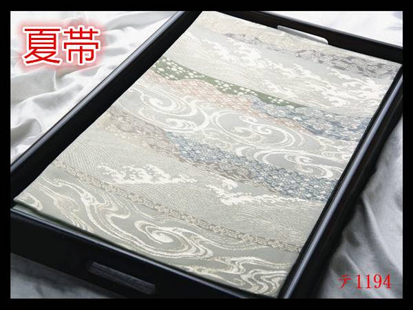 蔵【テ1194】西陣逸品 夏物 紗 横段波頭紋 蕎麦切色地 透かし 夏帯 六通高級美術袋帯 新品同様◇検◇簪着物名古屋帯和装小物帯締め 收藏