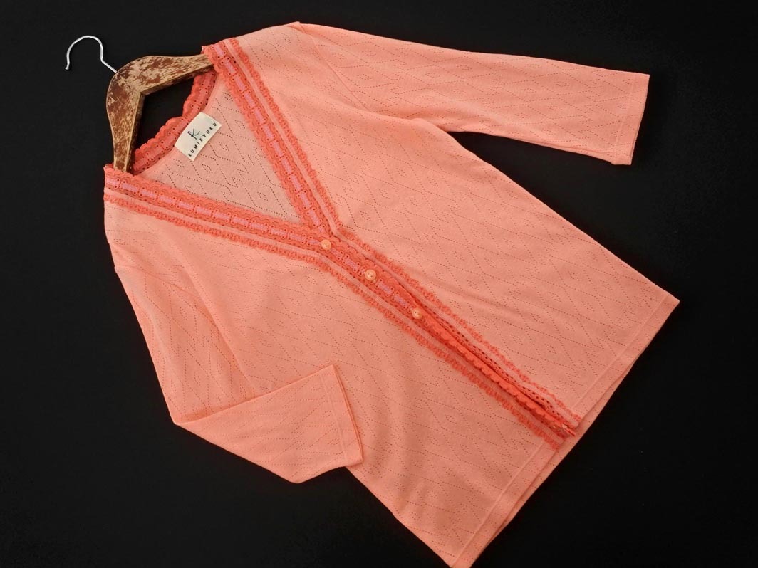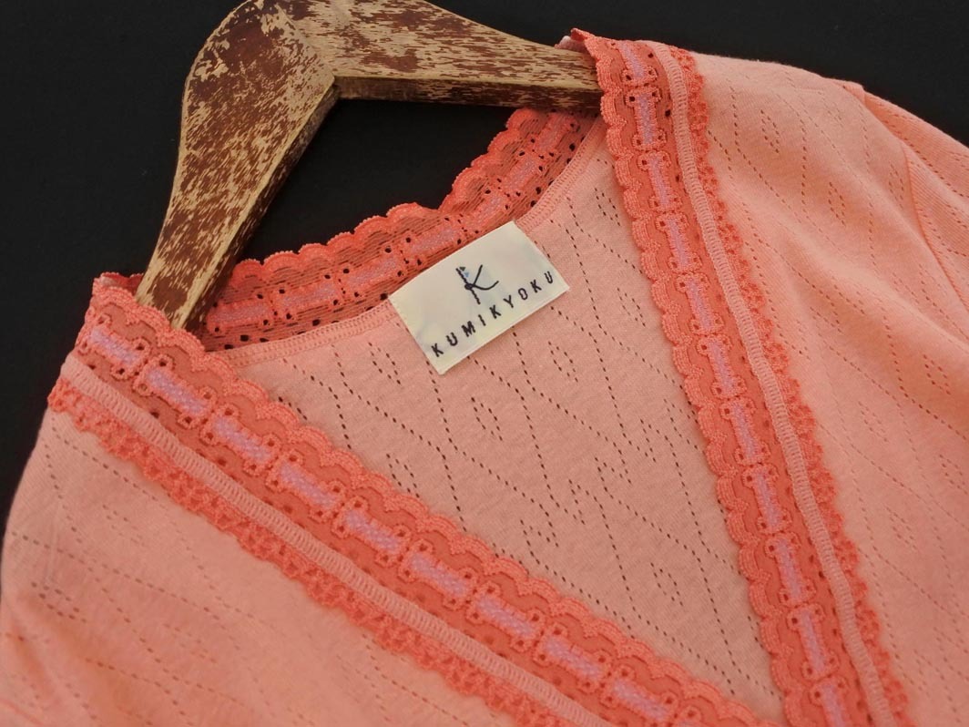 ネコポスOK KUMIKYOKU 組曲 Vネック レース 7分袖 カーディガン size2/ピンク ■◇ ☆ fgc9 レディース 收藏