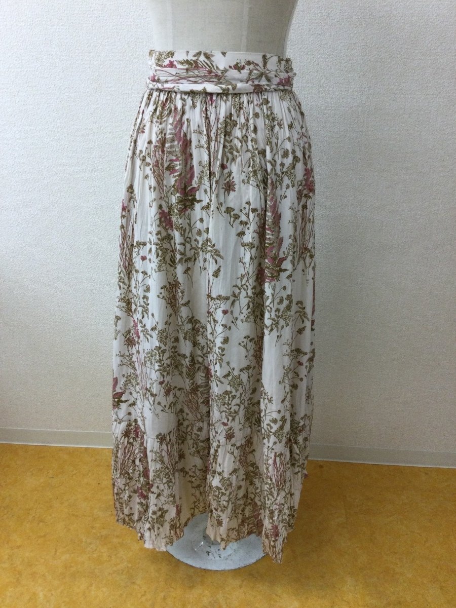 | 管理番号:99^136512 Mila Owen 巻きスカート ベージュにピンク花 ボタニカル 表示サイズ:0 実寸(参考)